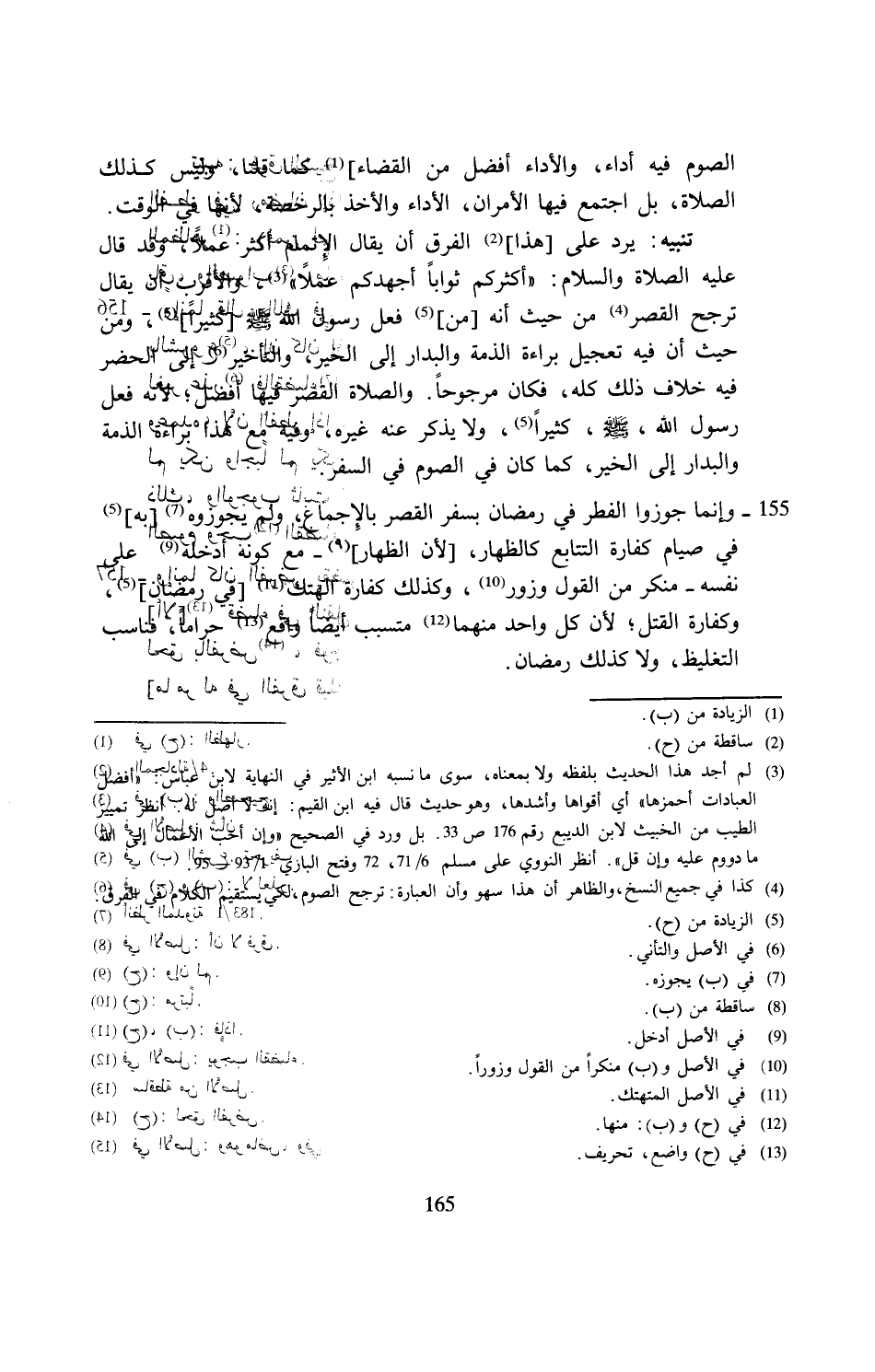 (¬3) لم أجد هذا الحديث بلفظه ولا بمعناه، سوى ما نسبه ابن الأثير في النهاية لابن عباس: "أفضل العبادات أحمزها" أي أقواها وأشدها، وهو حديث قال فيه ابن القيم: إنه لا أصل له. انظر تمييز الطيب من الخبيث لابن الديبع رقم 176 ص 33. بل ورد في الصحيح "وإن أحب الأعمال إلى الله ما دووم عليه وإن قل". انظر النووي على مسلم 6/ 71. 72 وفتح الباري 1/ 93 - 95.
