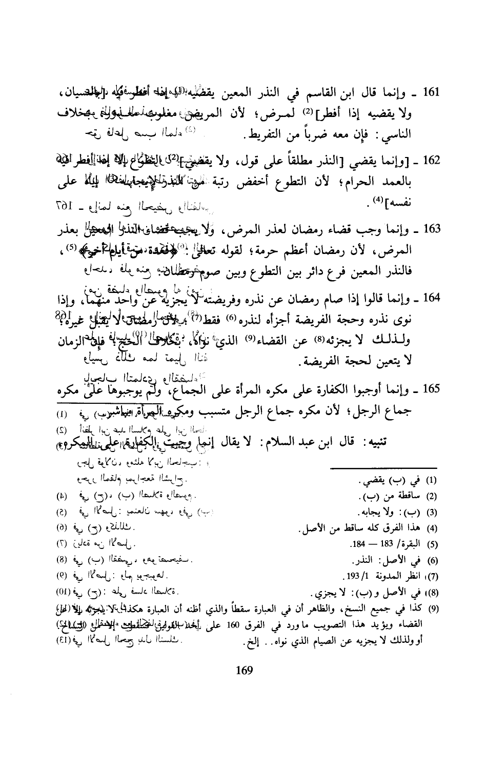 (¬9) كذا في جميع النسخ, والظاهر أن في العبارة سقطًا والذي أظنه أن العبارة هكذا: لا يجزيه إلا عن القضاء ويؤيد هذا التصويب ما ورد في الفرق 160 على أحد القولين فسقطت إلا من اتساخ أو ولذلك لا يجزيه عن الصيام الذي نواه .. إلخ.