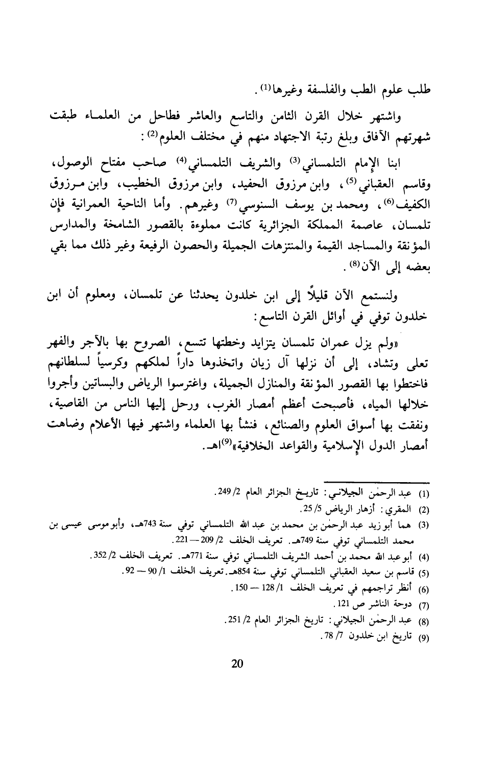 (¬3) هما أبو زيد عبد الرحمن بن محمد بن عبد الله التلمساني توفي سنة 743 هـ، وأبو موسى عيسى بن محمد التلمساني توفي سنة 749 هـ. تعريف الخلف 2/ 209 - 221.