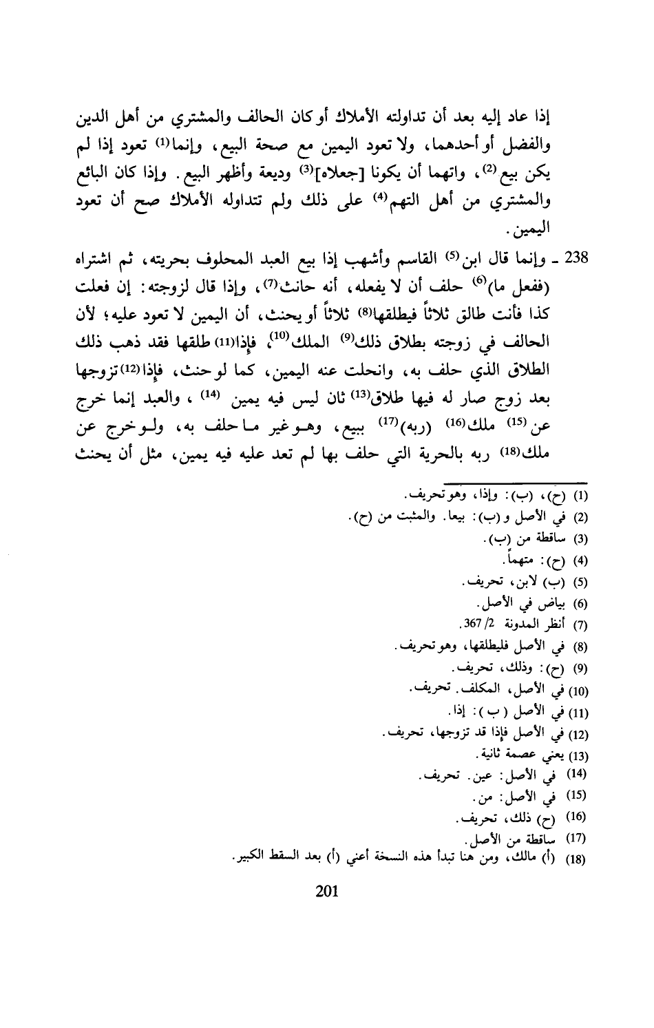 (¬18) مالك، ومن هنا تبدأ هذه النسخة أعني (أ) بعد السقط الكبير.