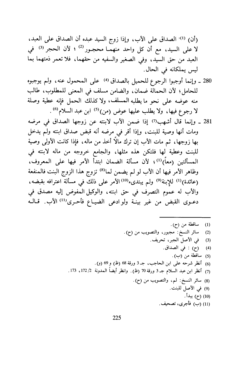 (¬7) انظر ابن عبد السلام جـ 3 ورقة 70 (ظ). وانظر أيضًا المدونة 2/ 172، 173.