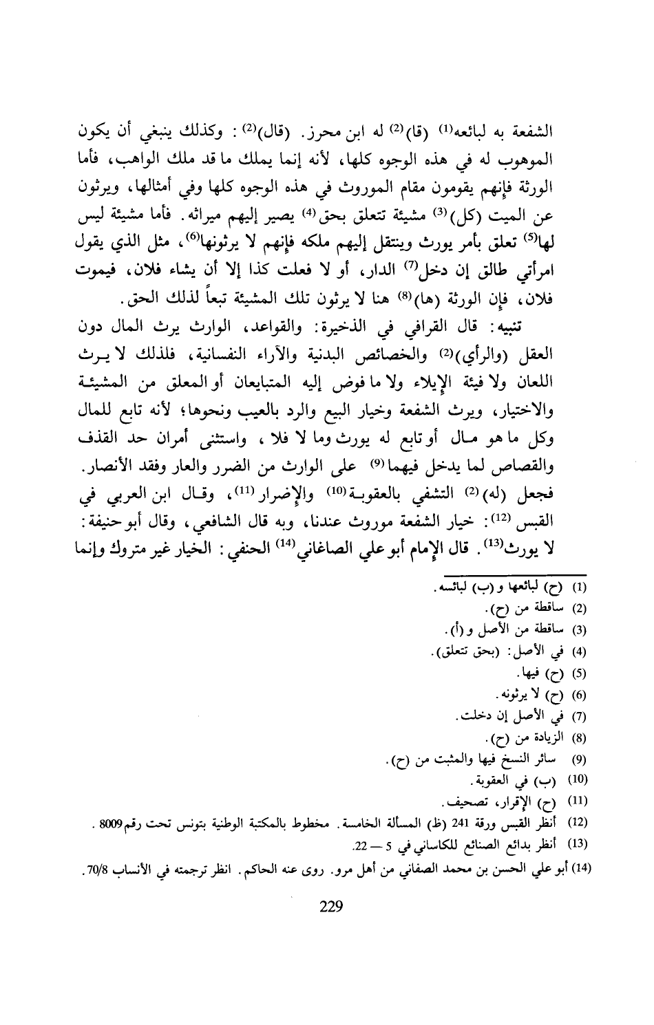 (¬12) انظر القبس ورقة 241 (ظ) المسألة الخامسة. مخطوط بالمكتبة الوطنية بتونس تحت رقم 8009.