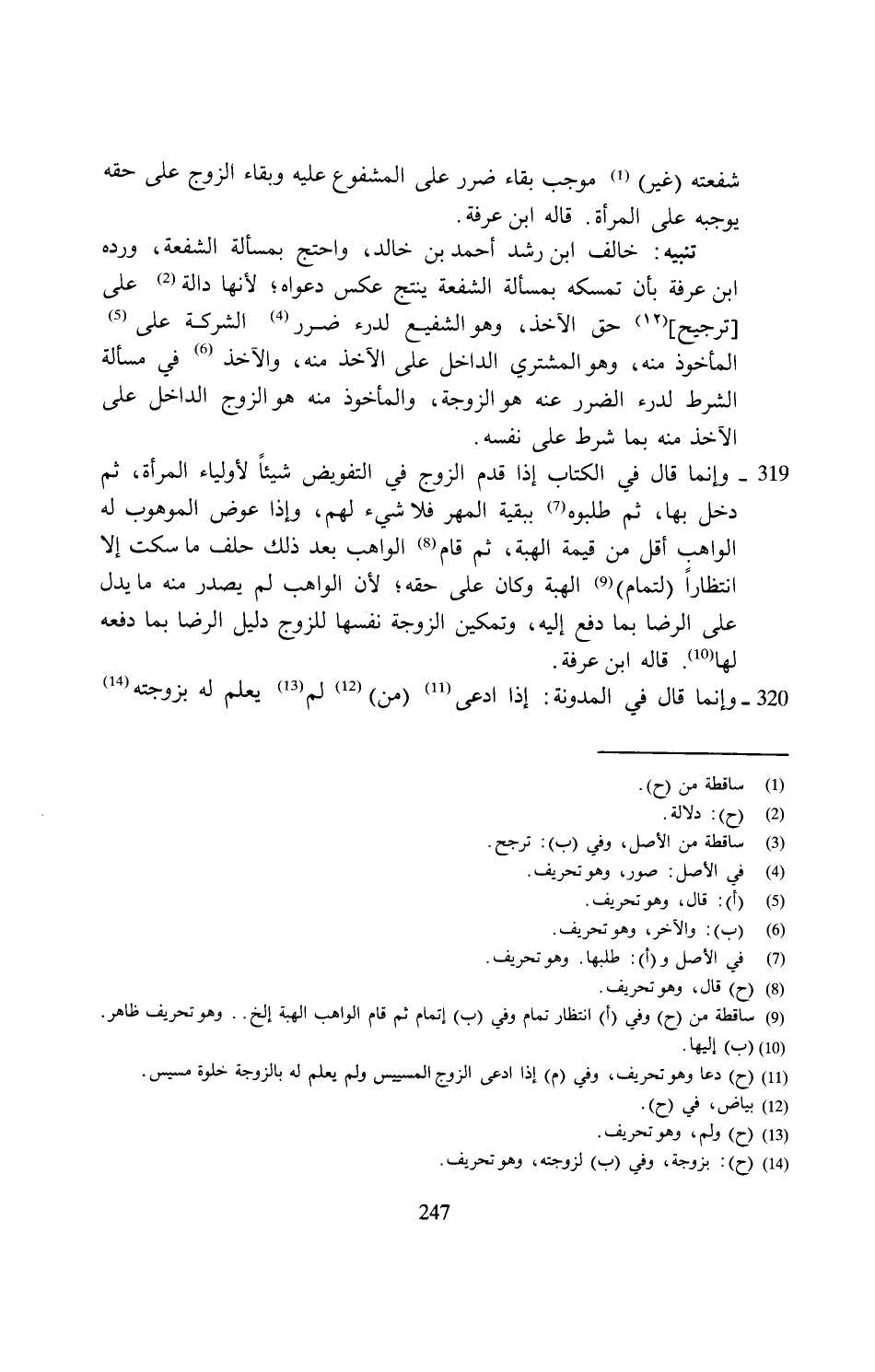 شفعته (غير) (¬1) موجب بقاء ضرر على المشفوع عليه وبقاء الزوج على حقه يوجبه على المرأة. قاله ابن عرفة.