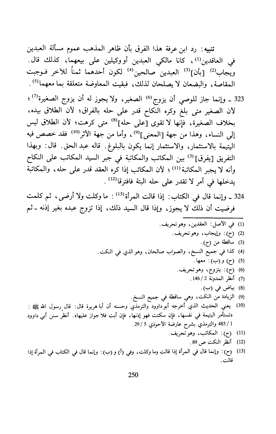 (¬10) يعني الحديث الَّذي أخرجه أبو داوود والترمذي وحسنه أن أبا هريرة قال: قال رسول الله - صلى الله عليه وسلم -: "تستأمر اليتيمة في نفسها، فإن سكتت فهو إذنها، فإِن أبت فلا جواز عليها". انظر سنن أبي داوود 1/ 483 والترمذي بشرح عارضة الأحوذي 5/ 29.