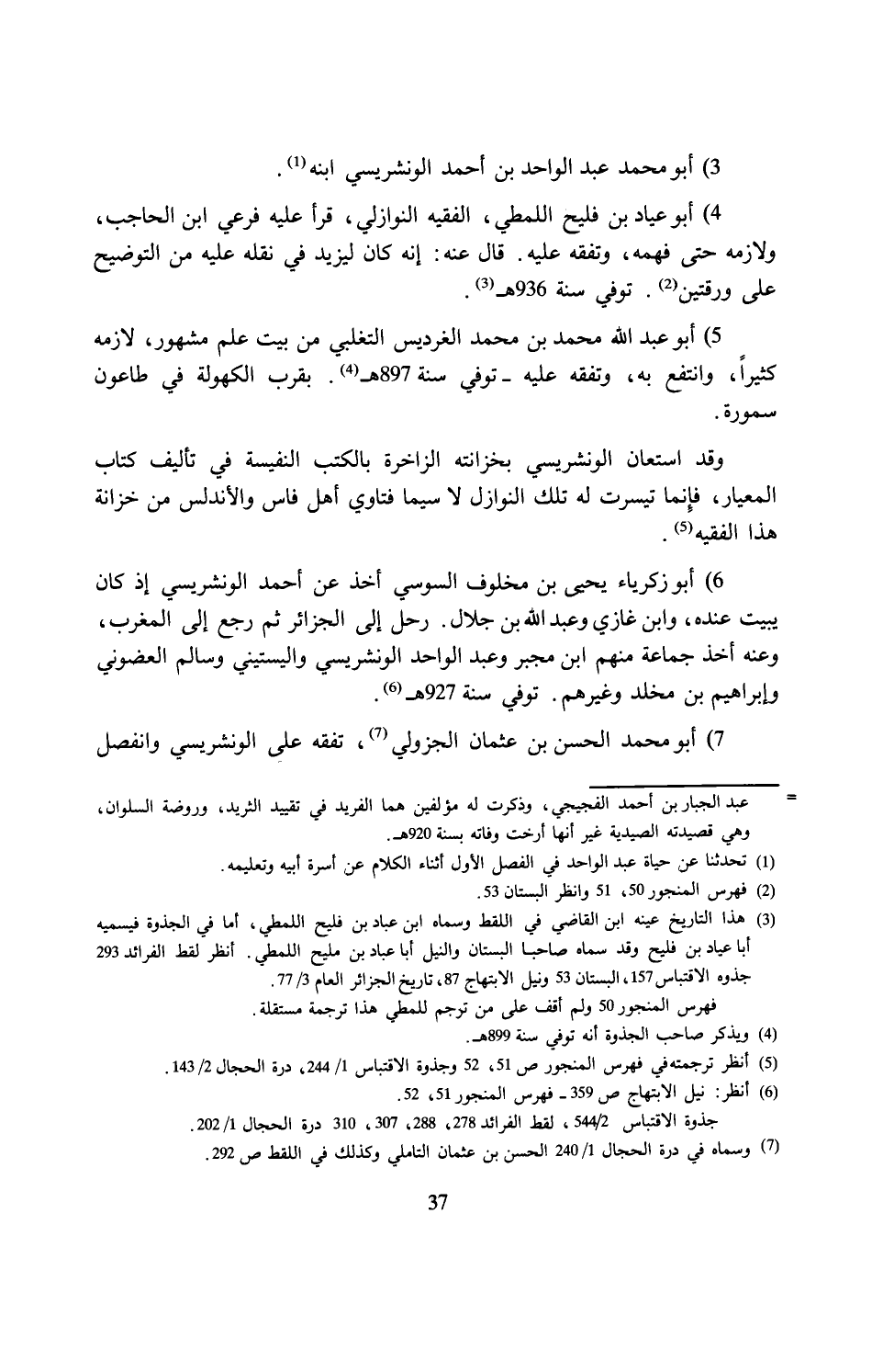 7) أبو محمد الحسن بن عثمان الجزولي (¬7)، تفقه على الونشريسي وانفصل