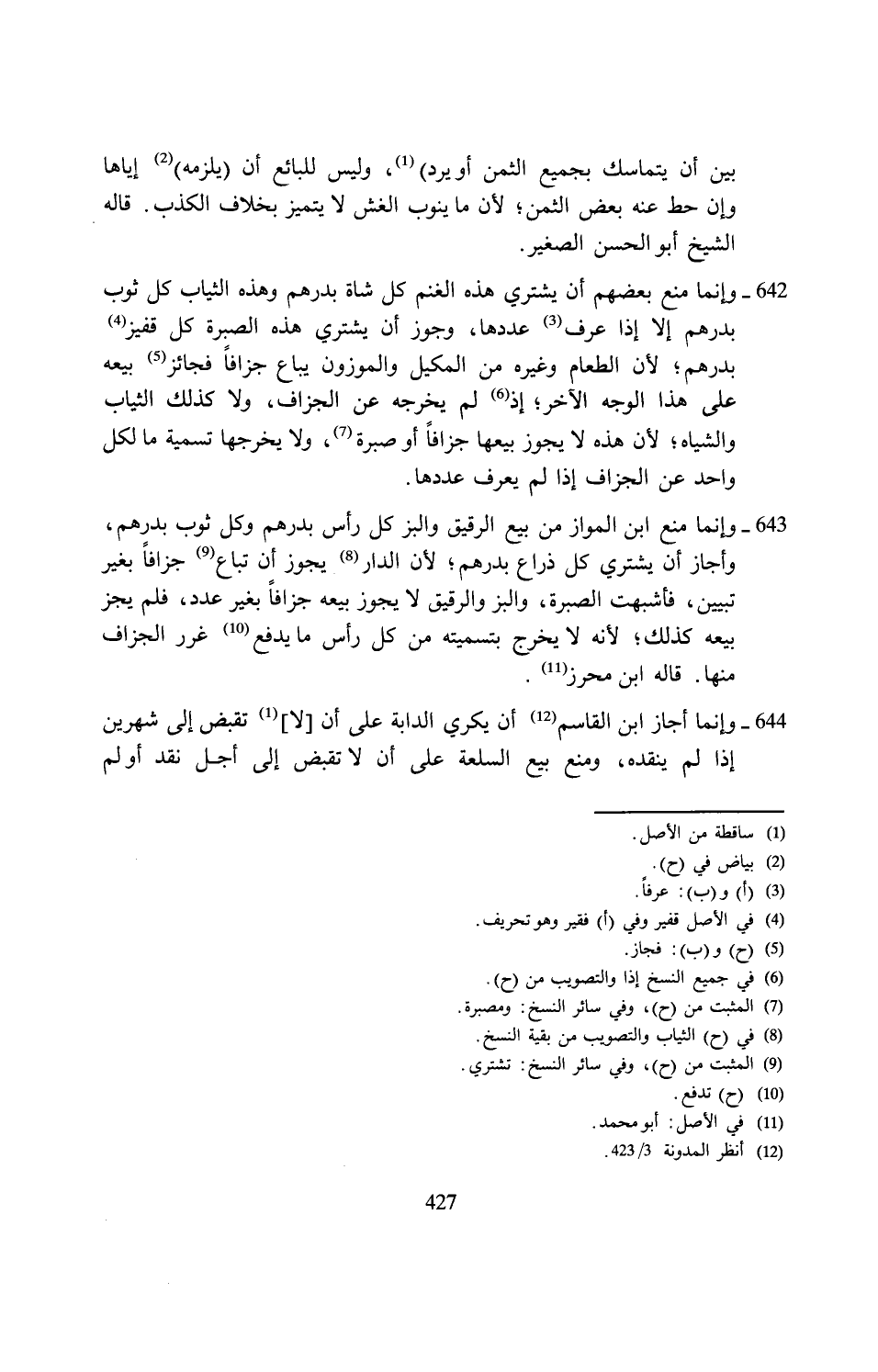 (¬12) انظر المدونة 3/ 423.