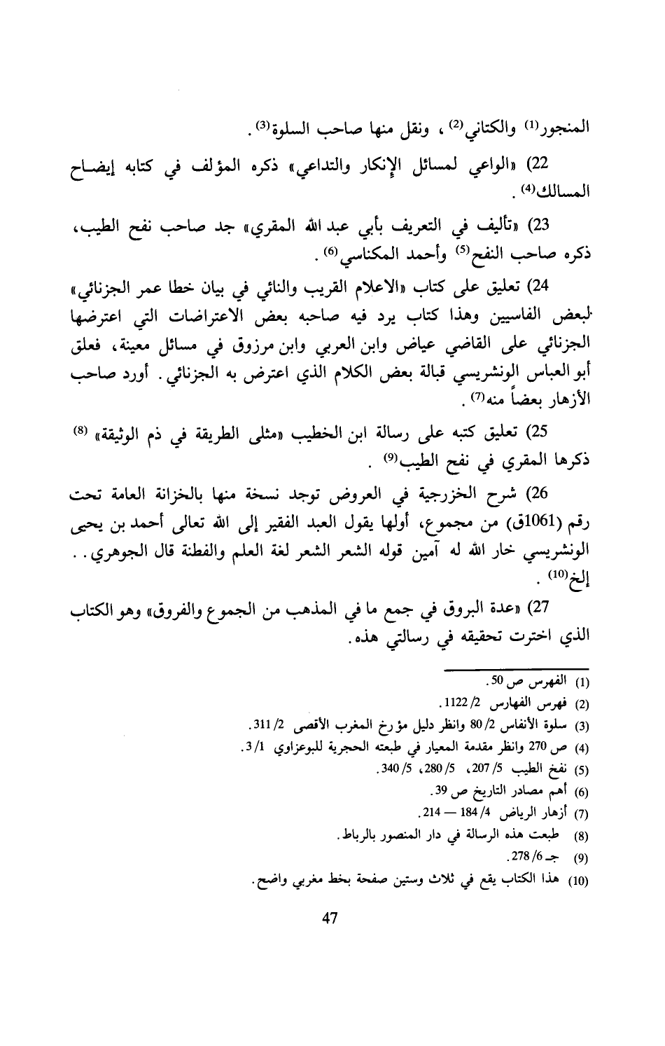 المنجور (¬1) والكتاني (¬2)، ونقل منها صاحب السلوة (¬3).