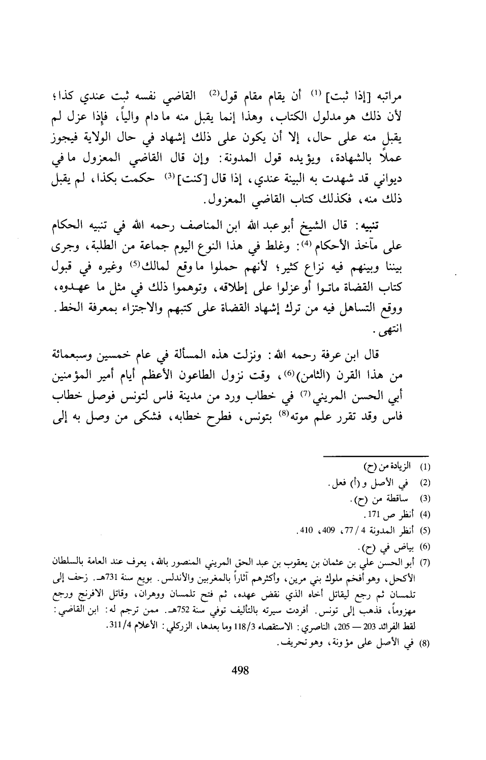 قال ابن عرفة رحمه الله: ونزلت هذه المسألة في عام خمسين وسبعمائة من هذا القرن (الثامن) (¬6)، وقت نزول الطاعون الأعظم أيام أمير المؤمنين أبي الحسن المريني (¬7) في خطاب ورد من مدينة فاس لتونس فوصل خطاب فاس وقد تقرر علم موته (¬8) بتونس، فطرح خطابه، فشكى من وصل به إلى