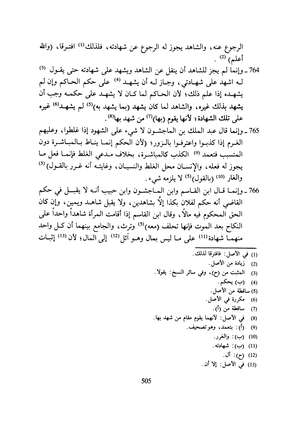 764 - وإنما لم يجز للشاهد أن ينقل عن الشاهد ويشهد على شهادته حتى يقول (¬3) له اشهد على شهادتي، وجاز له أن يشهد (¬4) على حكم الحاكم وإن لم يشهده إذا علم ذلك؛ لأن الحاكم لما كان لا يشهد على حكمه وجب أن يشهد بذلك غيره، والشاهد لما كان يشهد (بما يشهد به) (¬5) لم يشهد (¬6) غيره على تلك الشهادة؛ لأنها يقوم (بها) (¬7) من شهد بها (¬8).