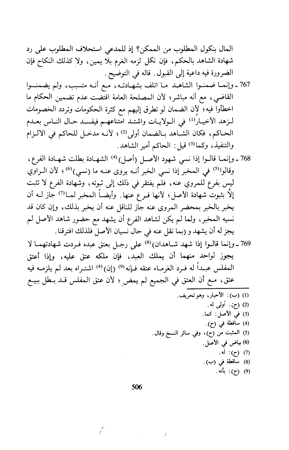 767 - وإنما ضمنوا الشاهد ما أتلف بشهادته، مع أنه متسبب، ولم يضمنوا القاضي، مع أنه مباشر، لأن المصلحة العامة اقتضت عدم تضمين الحكام ما أخطأوا فيه؛ لأن الضمان لو تطرق إليهم مع كثرة الحكومات وتردد الخصومات لزهد الأخيار (¬1) في الولايات واشتد امتناعهم فيفسد حال الناس بعدم الحاكم، فكان الشاهد بالضمان أولى (¬2)؛ لأنه مدخل للحاكم في الإلزام والتنفيذ، وكما (¬3) قيل: الحاكم أمير الشاهد.