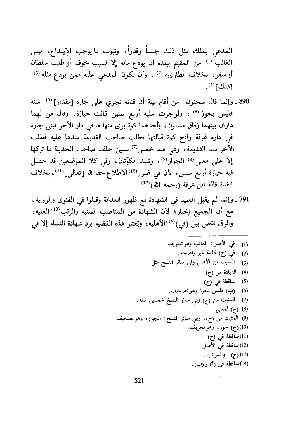 890 - وإنما قال سحنون: من أقام بينة أن قناته تجري على جاره [مقدار] (¬5) سنة فليس بحوز (¬6)، ولو جرت عليه أربع سنين كانت حيازة. وقال من لهما داران بينهما زقاق مسلوك، بأحدهما كوة يرى منها ما في دار الآخر فبنى جاره في داره غرفة وفتح كوة قبالتها فطلب صاحب القديمة سدها عليه فطلب الآخر سد القديمة، وهي منذ خمس (¬7) سنين حلف صاحب الحديثة ما تركها إلا على معنى (¬8) الجوار (¬9)، وتسد الكوّتان، وفي كلا الموضعين قد حصل فيه حيازة أربع سنين؛ لأن في ضرر (¬10) الاطلاع حقًّا لله [تعالى] (¬11)، بخلاف القناة قاله ابن عرفة (رحمه الله) (¬12).