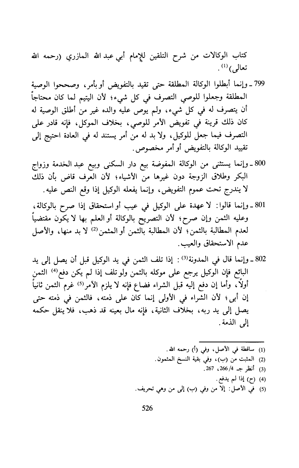 كتاب الوكالات من شرح التلقين للإمام أبي عبد الله المازري (رحمه الله تعالى) (¬1).