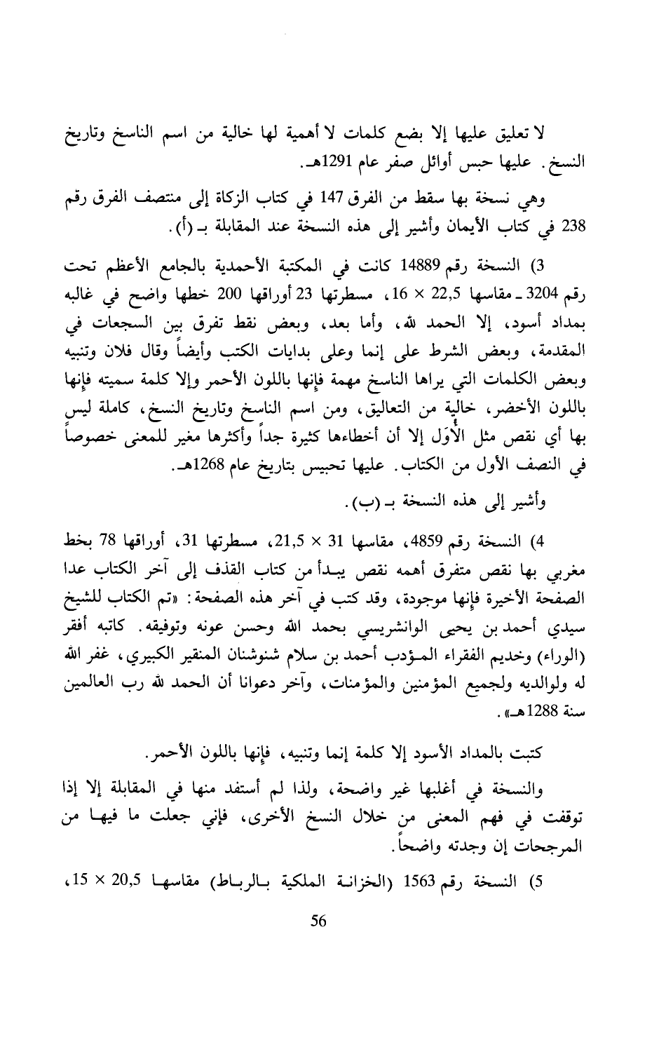 5) النسخة رقم 1563 (الخزانة الملكية بالرباط) مقاسها 20.5 × 15،