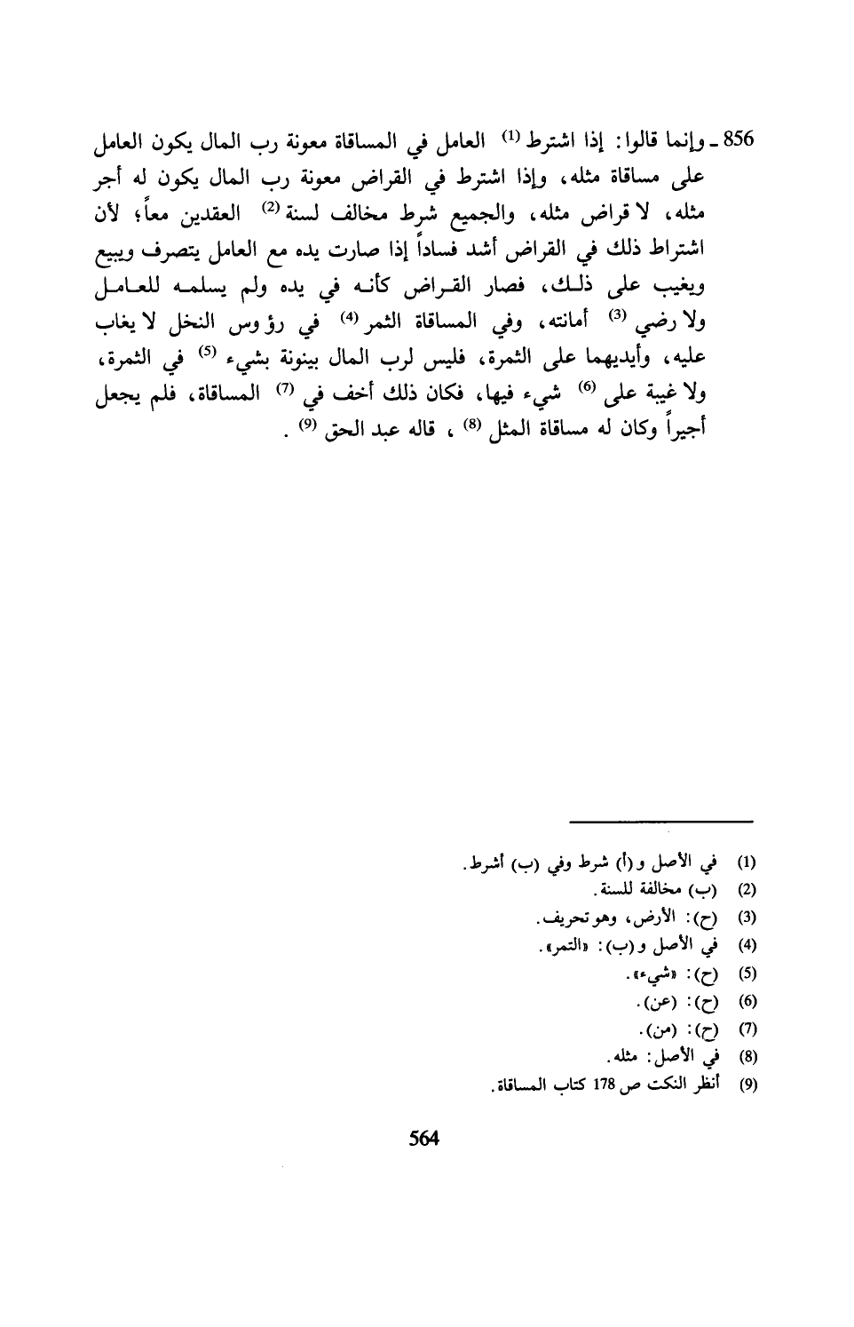 (¬9) انظر النكت ص 178 كتاب المساقاة.