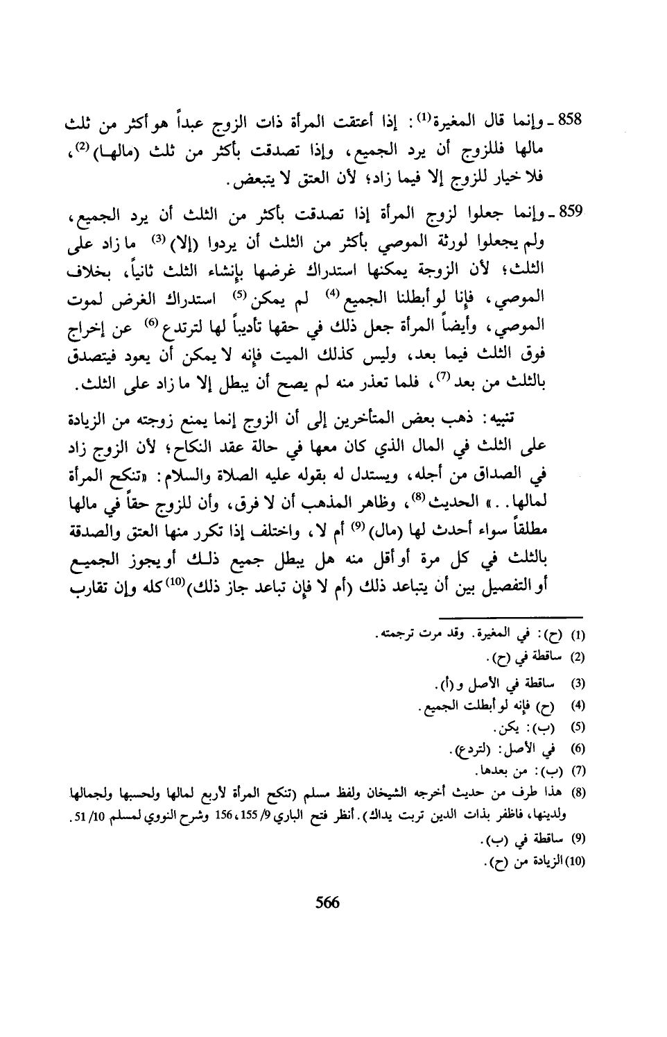 858 - وإنما قال المغيرة (¬1): إذا أعتقت المرأة ذات الزوج عبدًا هو أكثر من ثلث مالها فللزوج أن يرد الجميع، وإذا تصدقت بأكثر من ثلث (مالها) (¬2)، فلا خيار للزوج إلا فيما زاد؛ لأنَّ العتق لا يتبعض.