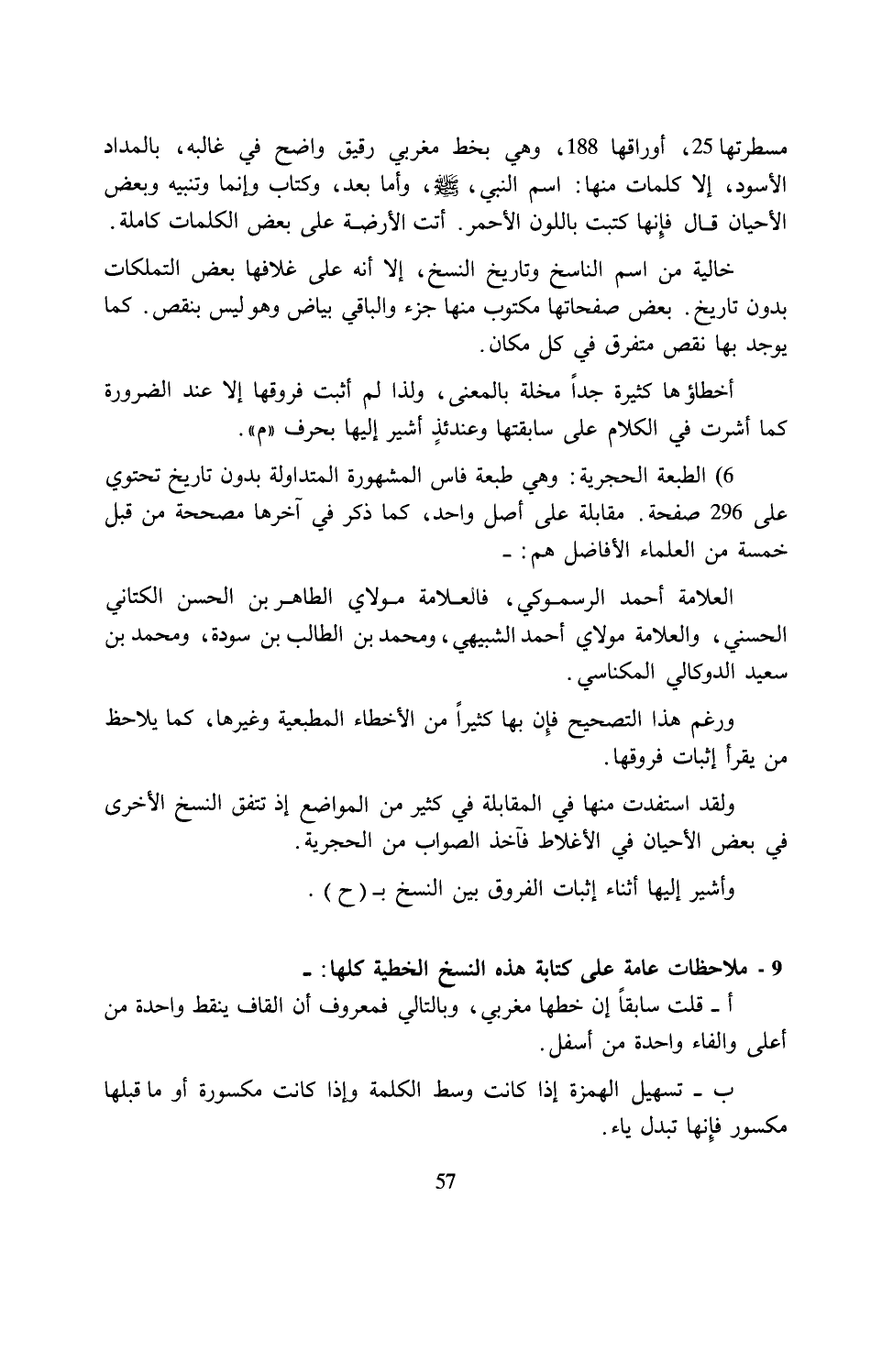 9 - ملاحظات عامة على كتابة هذه النسخ الخطية كلها: