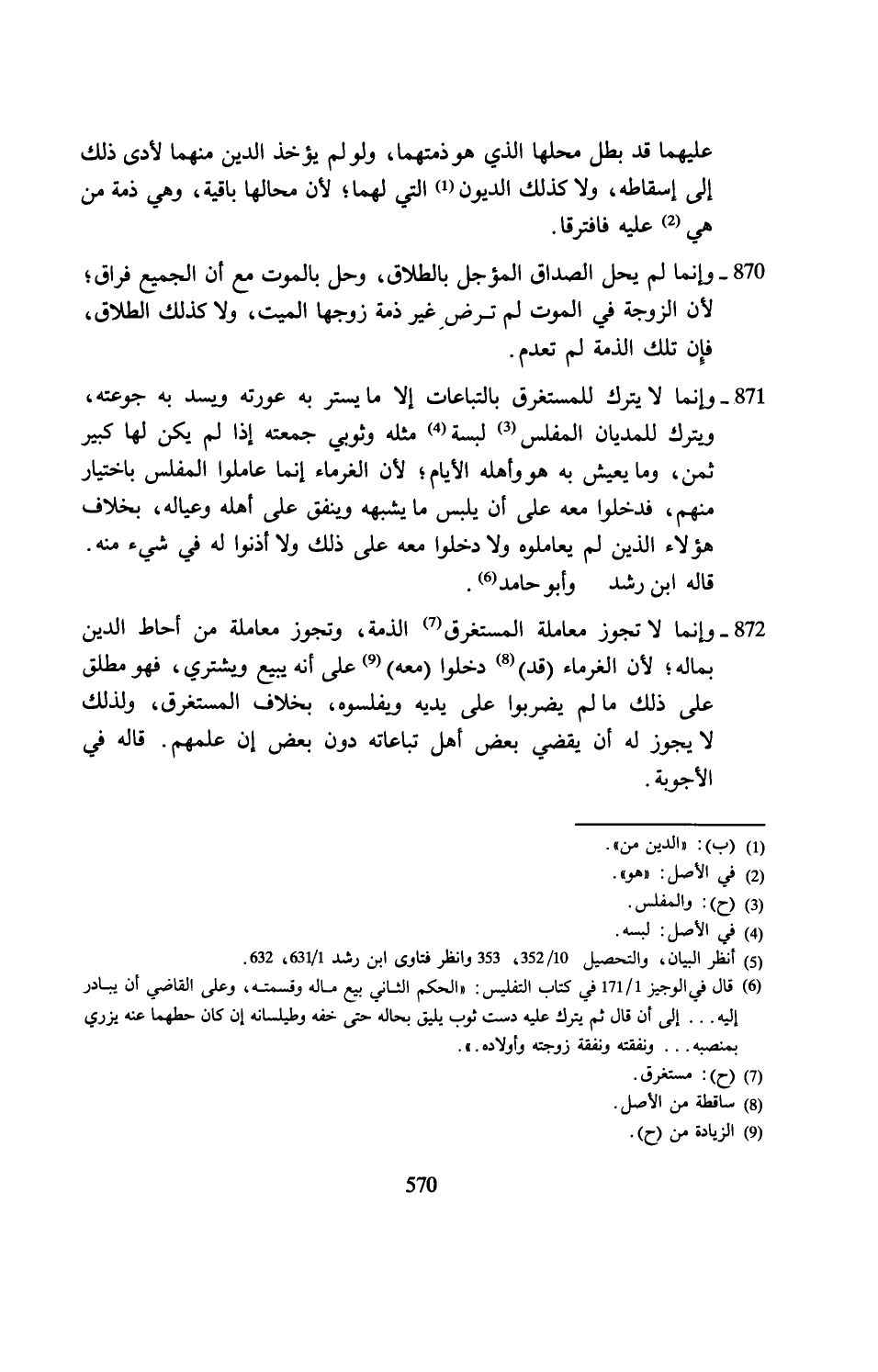 (¬5) انظر البيان، والتحصيل 10/ 352، 353 وانظر فتاوى ابن رشد إلَّا 1/ 631، 632.