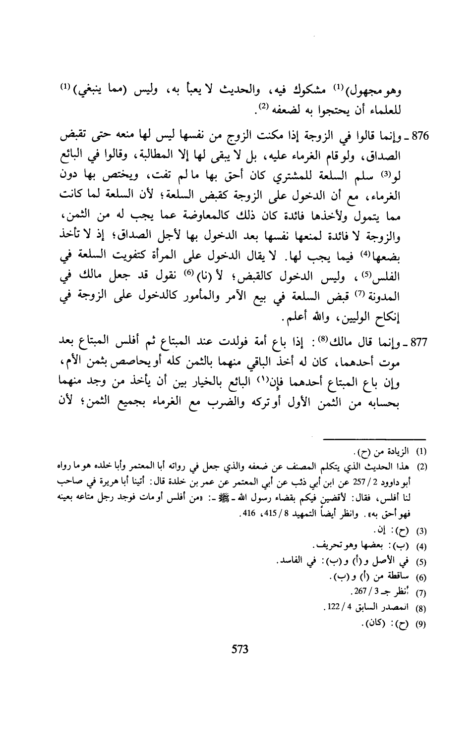 (¬2) هذا الحديث الذي يتكلم المصنف عن ضعفه والذي جعل في رواته أبا المعتمر وأبا خلده هو ما رواه أبو داوود 2/ 257 عن ابن أبي ذئب عن أبي المعتمر عن عمر بن خلدة قال: أتينا أبا هريرة في صاحب لنا أفلس، فقال: لأقضين فيكم بقضاء رسول الله - صلى الله عليه وسلم -: "من أفلس أو مات فوجد رجل متاعه بعينه فهو أحق به". وانظر أيضًا التمهيد 8/ 415، 416.