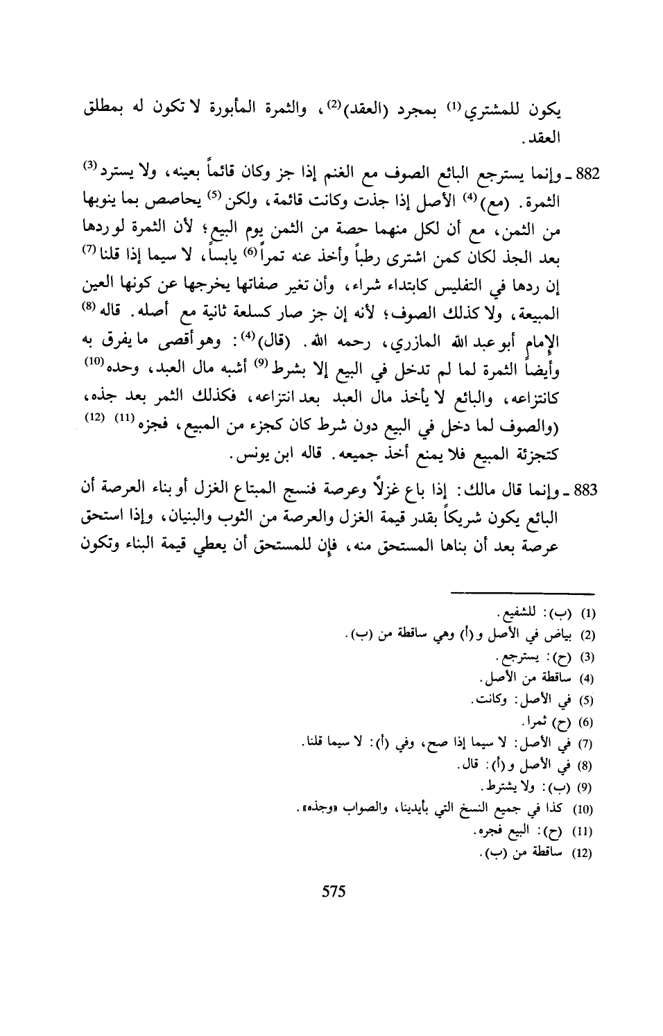 883 - وإنما قال مالك: إذا باع غزلًا وعرصة فنسج المبتاع الغزل أو بناء العرصة أن البائع يكون شريكًا بقدر قيمة الغزل والعرصة من الثوب والبنيان، وإذا استحق عرصة بعد أن بناها المستحق منه، فإِن للمستحق أن يعطي قيمة البناء وتكون