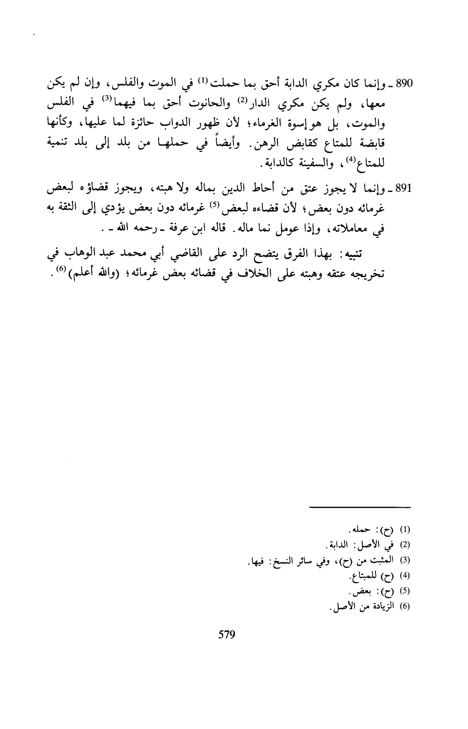 891 - وإنما لا يجوز عتق من أحاط الدين بماله ولا هبته، ويجوز قضاؤه لبعض غرمائه دون بعض؛ لأنَّ قضاءه لبعض (¬5) غرمائه دون بعض يؤدي إلى الثقة به في معاملاته، وإذا عومل نما ماله. قاله ابن عرفة -رحمه الله-.
