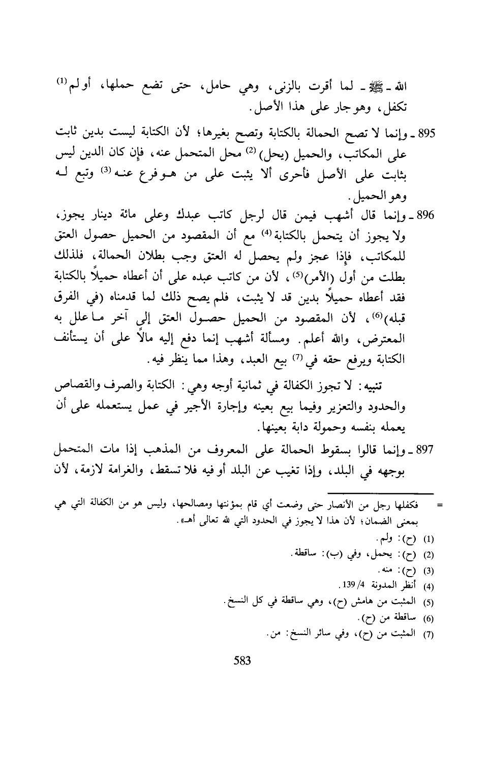 897 - وإنما قالوا بسقوط الحمالة على المعروف من المذهب إذا مات المتحمل بوجهه في البلد، وإذا تغيب عن البلد أو فيه فلا تسقط، والغرامة لازمة، لأنَّ