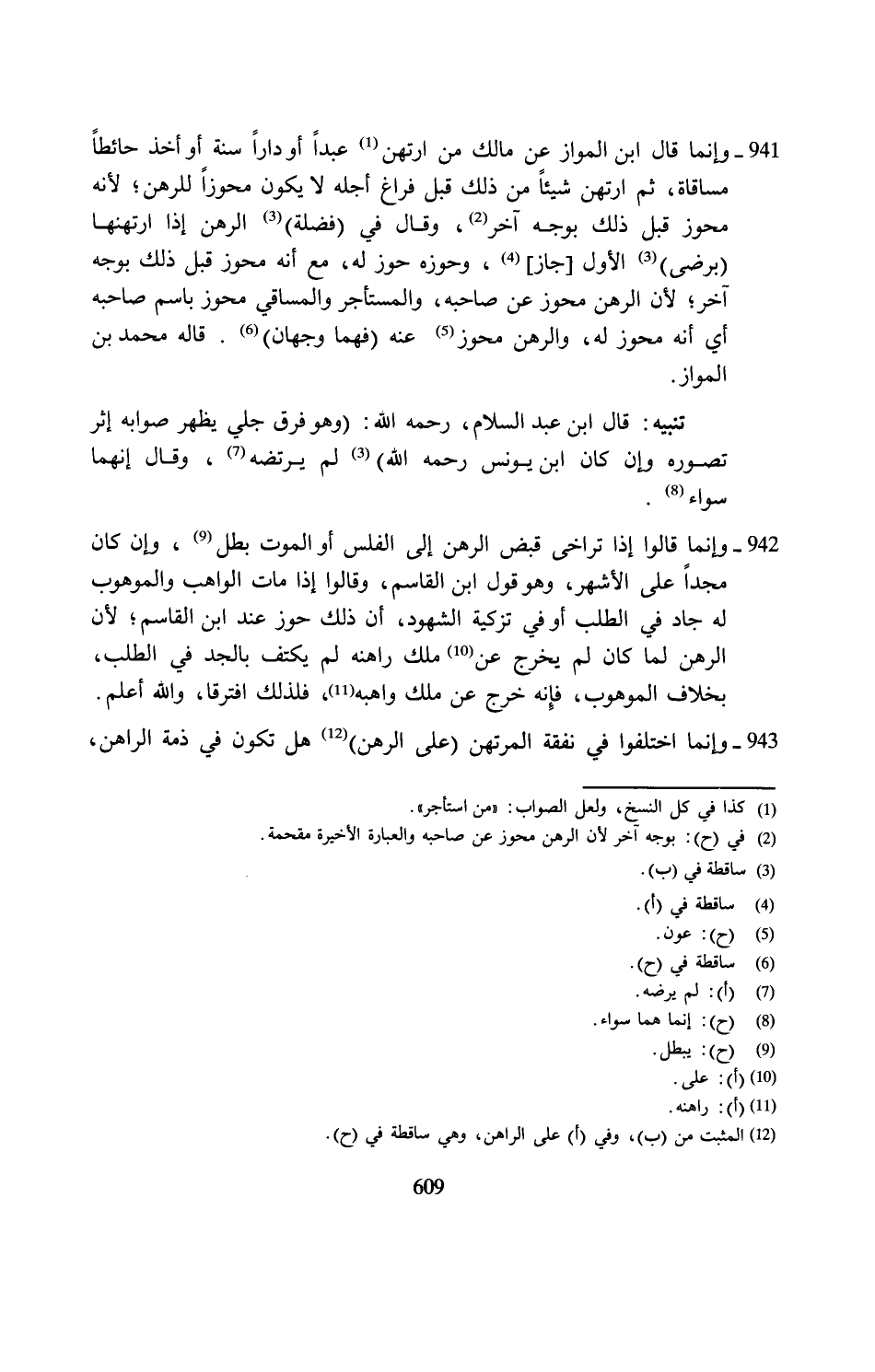 941 - وإنَّما قال ابن المواز عن مالك من ارتهن (¬1) عبدًا أو دارًا سنة أو أخذ حائطًا مساقاة، ثم ارتهن شيئًا من ذلك قبل فراغ أجله لا يكون محوزًا للرهن؛ لأنَّه محوز قبل ذلك بوجه آخر (¬2)، وقال في (فضلة) (3) الرهن إذا ارتهنها (برضى) (¬3) الأوَّل [جاز] (¬4)، وحوزه حوز له، مع أنَّه محوز قبل ذلك بوجه آخر؛ لأنَّ الرهن محوز عن صاحبه، والمستأجر والمساقي محوز باسم صاحبه أي أنَّه محوز له، والرهن محوز (¬5) عنه (فهما وجهان) (¬6). قاله محمَّد بن المواز.