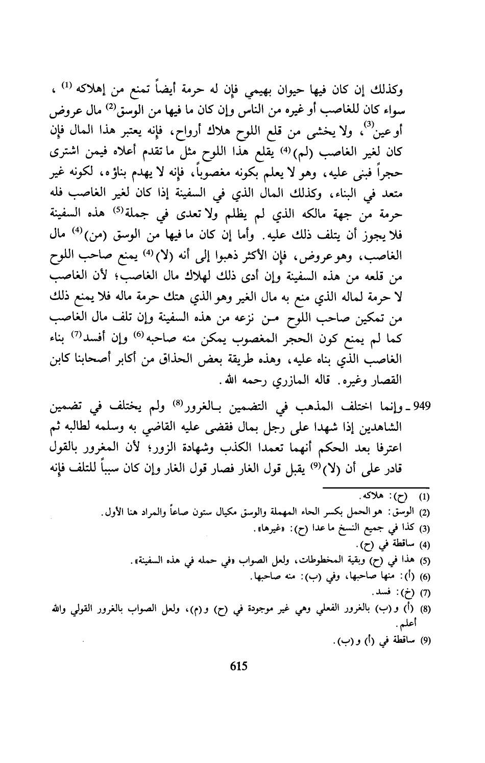 (¬8) (أ) و (ب) بالغرور الفعلي وهي غير موجودة في (ح) و (م)، ولعل الصواب بالغرور القولي والله أعلم.