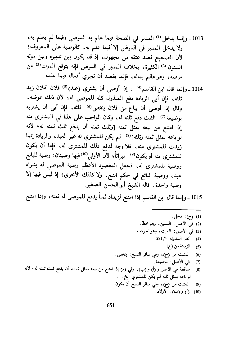 1015 - وإنَّما قال ابن القاسم إذا امتنع لزيداد ثمنًا يدفع للموصى له ثمنه، وإذا امتنع