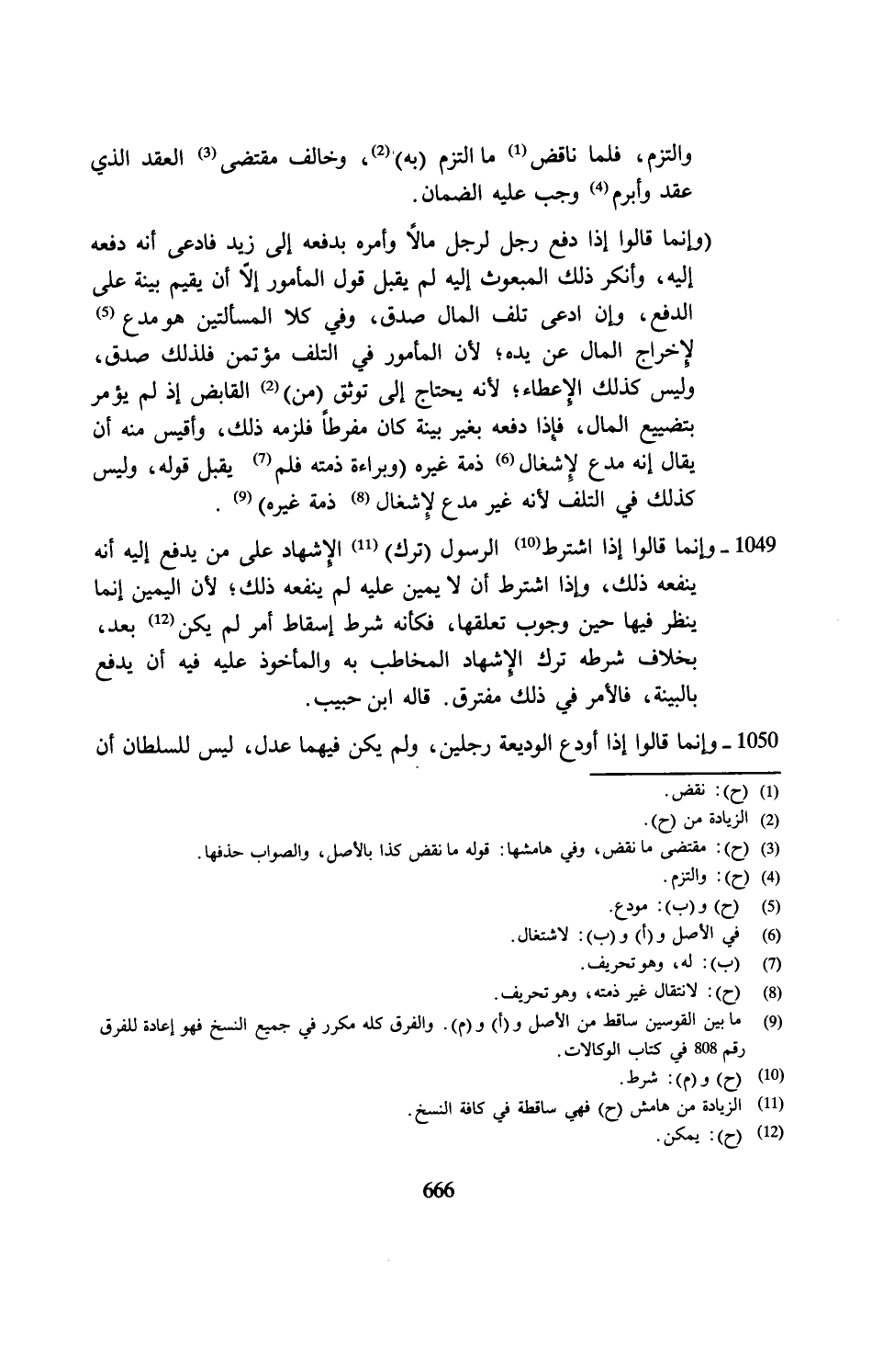 1049 - وإنما قالوا إذا اشترط (¬10) الرسول (ترك) (¬11) الإشهاد على من يدفع إليه أنه ينفعه ذلك، وإذا اشترط أن لا يمين عليه لم ينفعه ذلك؛ لأن اليمين إنما ينظر فيها حين وجوب تعلقها، فكأنه شرط إِسقاط أمر لم يكن (¬12) بعد، بخلاف شرطه ترك الإشهاد المخاطب به والمأخوذ عليه فيه أن يدفع بالبينة، فالأمر في ذلك مفترق. قاله ابن حبيب.