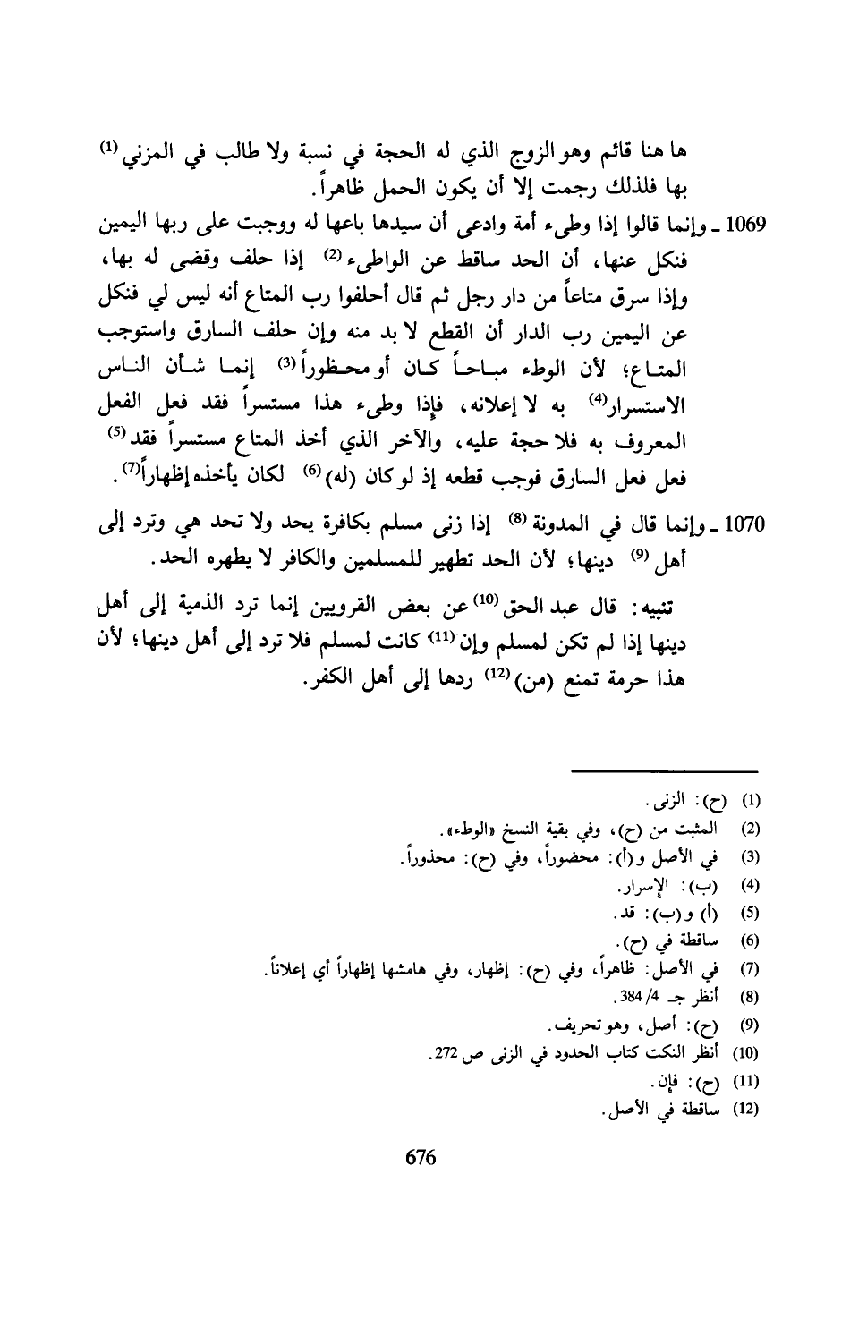(¬10) انظر النكت كتاب الحدود في الزنى ص 272.