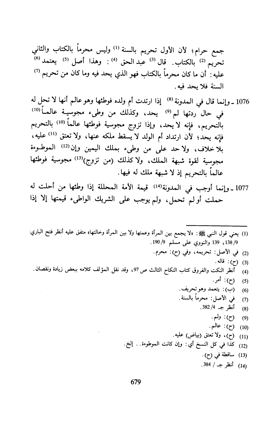 1076 - وإنما قال في المدونة (¬8) إذا ارتدت أم ولده فوطئها وهو عالم أنها لا تحل له في حال ردتها لم (¬9) يحد، وكذلك من وطئ مجوسية عالمًا (¬10) بالتحريم، فإِنه لا يحد، وإذا تزوج مجوسية فوطئها عالمًا (10) بالتحريم فإِنه يحد؛ لأن ارتداد أم الولد لا يسقط ملكه عنها، ولا تعتق (¬11) عليه، بلا خلاف، ولا حد على من وطئ بملك اليمين وإن (¬12) الموطوءة مجوسية لقوة شبهة الملك، ولا كذلك (من تزوج) (¬13) مجوسية فوطئها عالمًا بالتحريم إذ لا شبهة ملك له فيها.