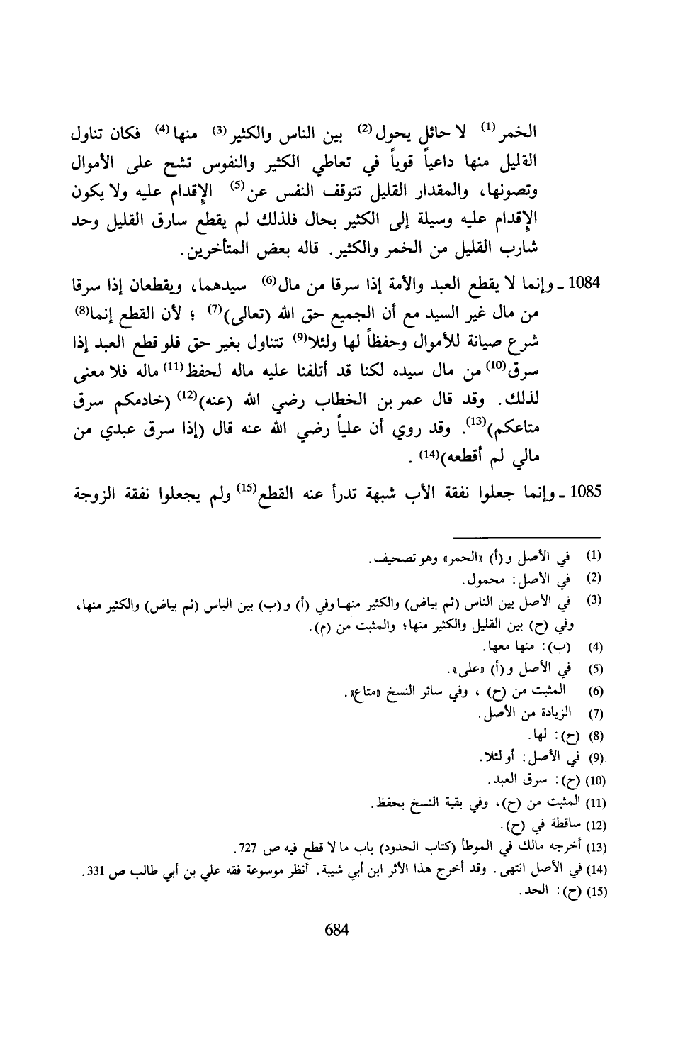 1085 - وإنما جعلوا نفقة الأب شبهة تدرأ عنه القطع (¬15) ولم يجعلوا نفقة الزوجة