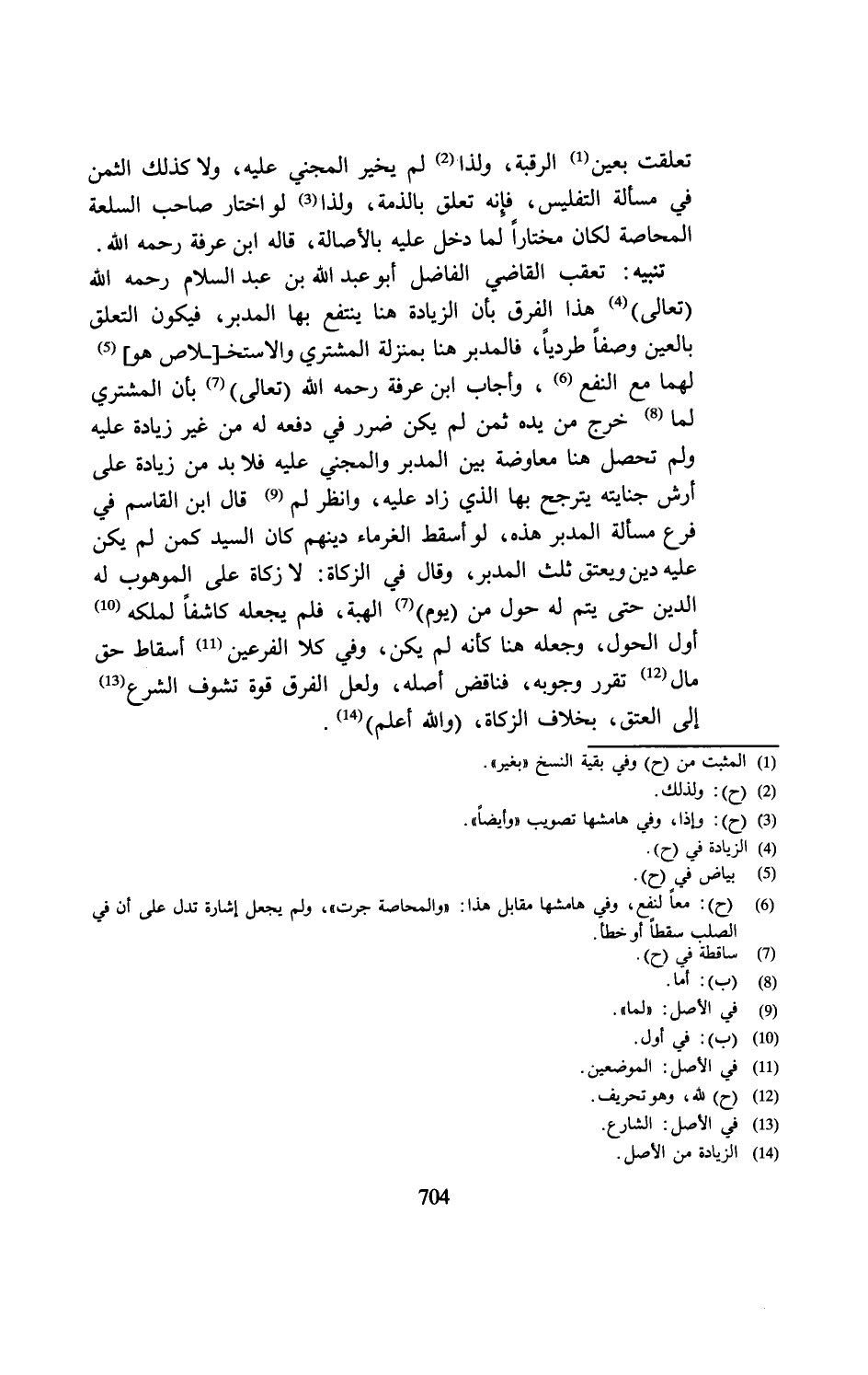 تنبيه: تعقب القاضي الفاضل أبو عبد الله بن عبد السلام رحمه الله (تعالى) (¬4) هذا الفرق بأن الزيادة هنا ينتفع بها المدبر، فيكون المتعلق بالعين وصفًا طرديًّا، فالمدبر هنا بمنزلة المشتري والاستخـ[ـلاص هو] (¬5) لهما مع النفع (¬6)، وأجاب ابن عرفة رحمه الله (تعالى) (¬7) بأن المشتري لما (¬8) خرج من يده ثمن لم يكن ضرر في دفعه له من غير زيادة عليه ولم تحصل هنا معاوضة بين المدبر والمجني عليه فلا بد من زيادة على أرش جنايته يترجح بها الذي زاد عليه، وانظر لم (¬9) قال ابن القاسم في فرع مسألة المدبر هذه، لو أسقط الغرماء دينهم كان السيد كمن لم يكن عليه دين ويعتق ثلث المدبر، وقال في الزكاة: لا زكاة على الموهوب له الدين حتَّى يتم له حول من (يوم) (7) الهبة، فلم يجعله كاشفًا لملكه (¬10) أول الحول، وجعله هنا كأنه لم يكن، وفي كلا الفرعين (¬11) أسقاط حق مال (¬12) تقرر وجوبه، فناقض أصله، ولعل الفرق قوة تشوف الشرع (¬13) إلى العتق، بخلاف الزكاة، (والله أعلم) (¬14).