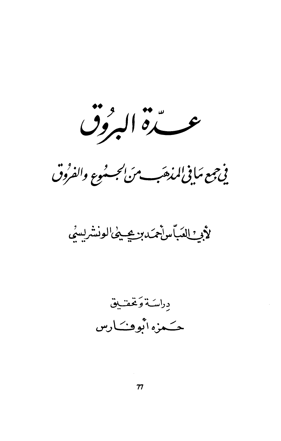 كتاب عدة البروق في جمع ما في المذهب من الجموع والفروق
