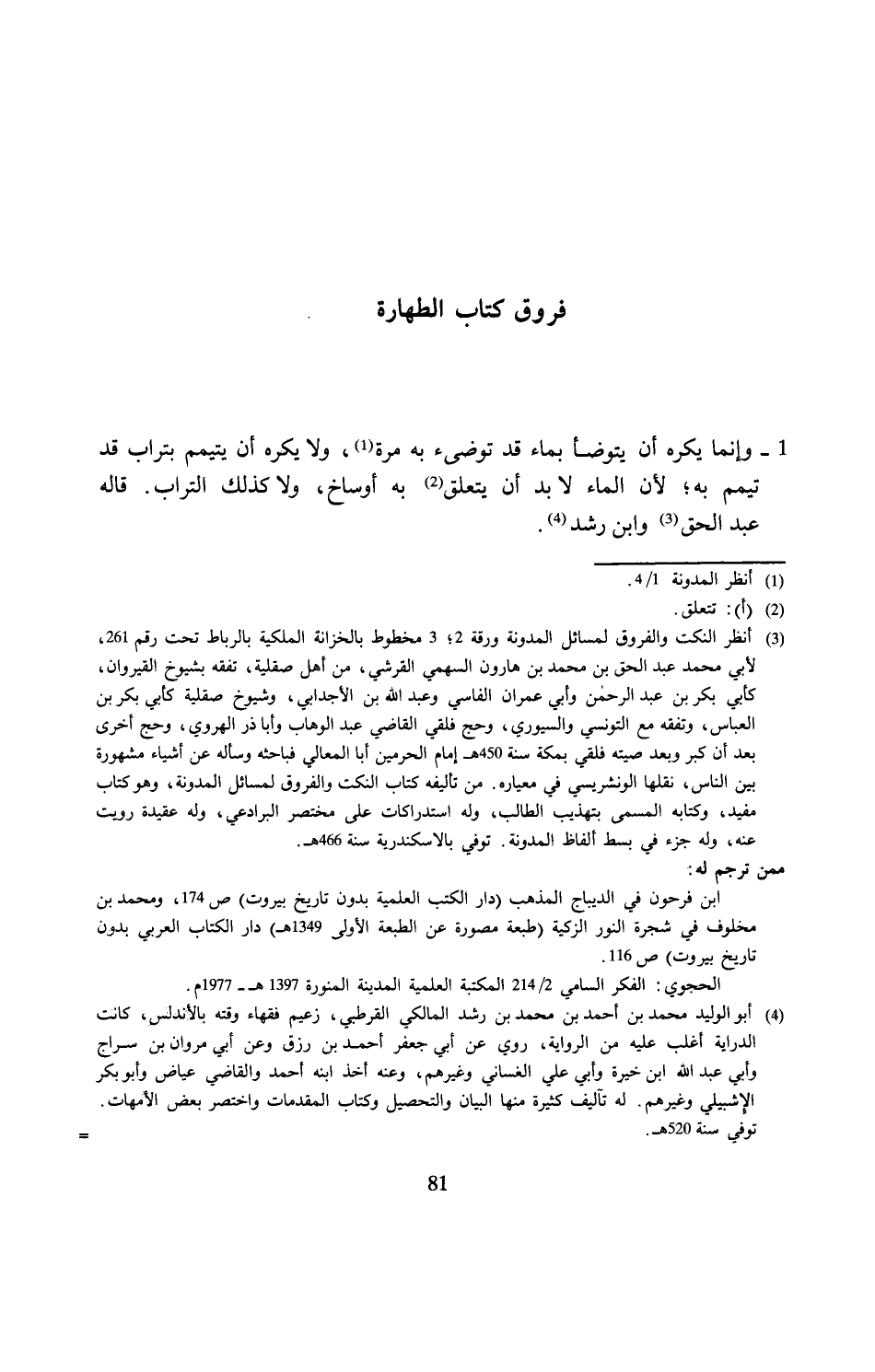 (¬4) أبو الوليد محمد بن أحمد بن محمد بن رشد المالكي القرطبي، زعيم فقهاء وقته بالأندلس، كانت الدراية أغلب عليه من الرواية، روي عن أبي جعفر أحمد بن رزق وعن أبي مروان بن سراج وأبي عبد الله ابن خيرة وأبي علي الغساني وغيرهم، وعنه أخذ ابنه أحمد والقاضي عياض وأبو بكر الإشبيلي وغيرهم. له تآليف كثيرة منها البيان والتحصيل وكتاب المقدمات واختصر بعض الأمهات. توفي سنة 520 هـ.=