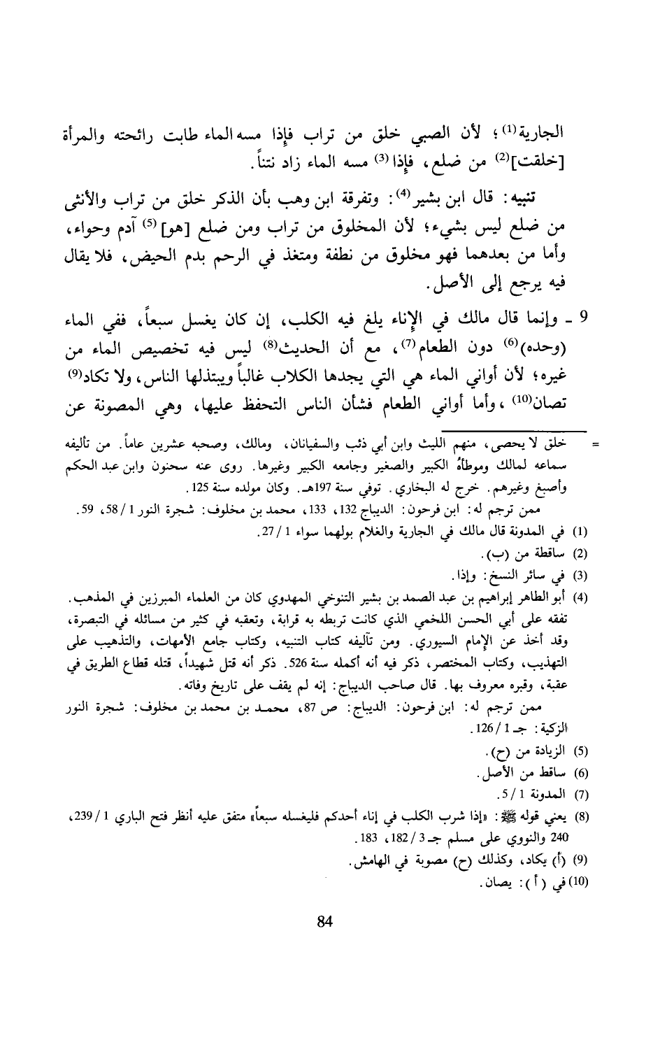 (¬8) يعني قوله - صلى الله عليه وسلم -: "إذا شرب الكلب في إناء أحدكم فليغسله سبعًا" متفق عليه انظر فتح الباري 1/ 239، 248 والنووي على مسلم جـ 3/ 182، 183.