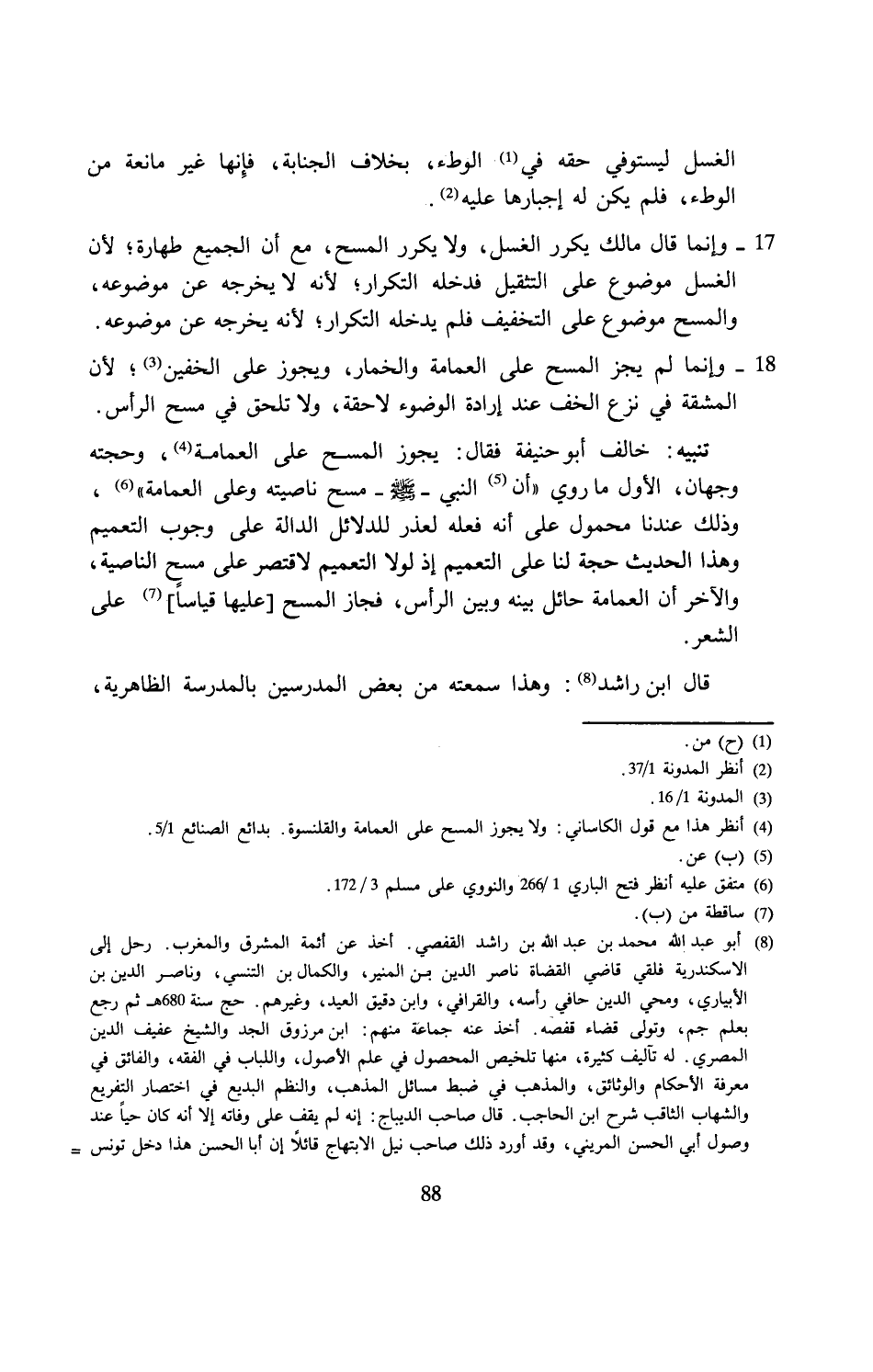 قال ابن راشد (¬8): وهذا سمعته من بعض المدرسين بالمدرسة الظاهرية،