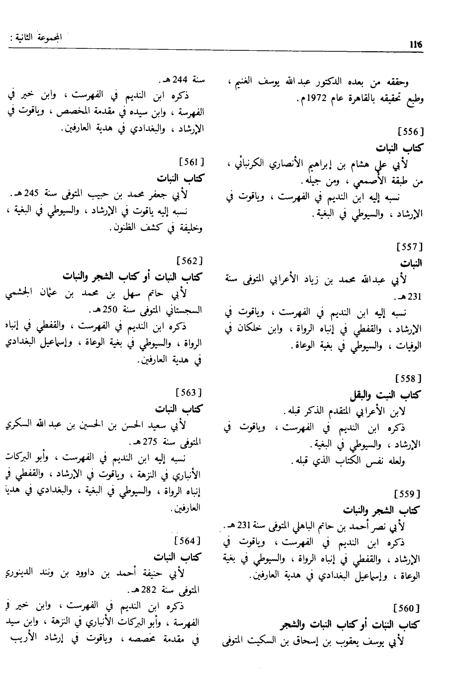 [560] كتاب النبات أو كتاب النبات والشجر لأبي يوسف يعقوب بن إسحاق بن السكيت المتوفى سنة 244 ه.