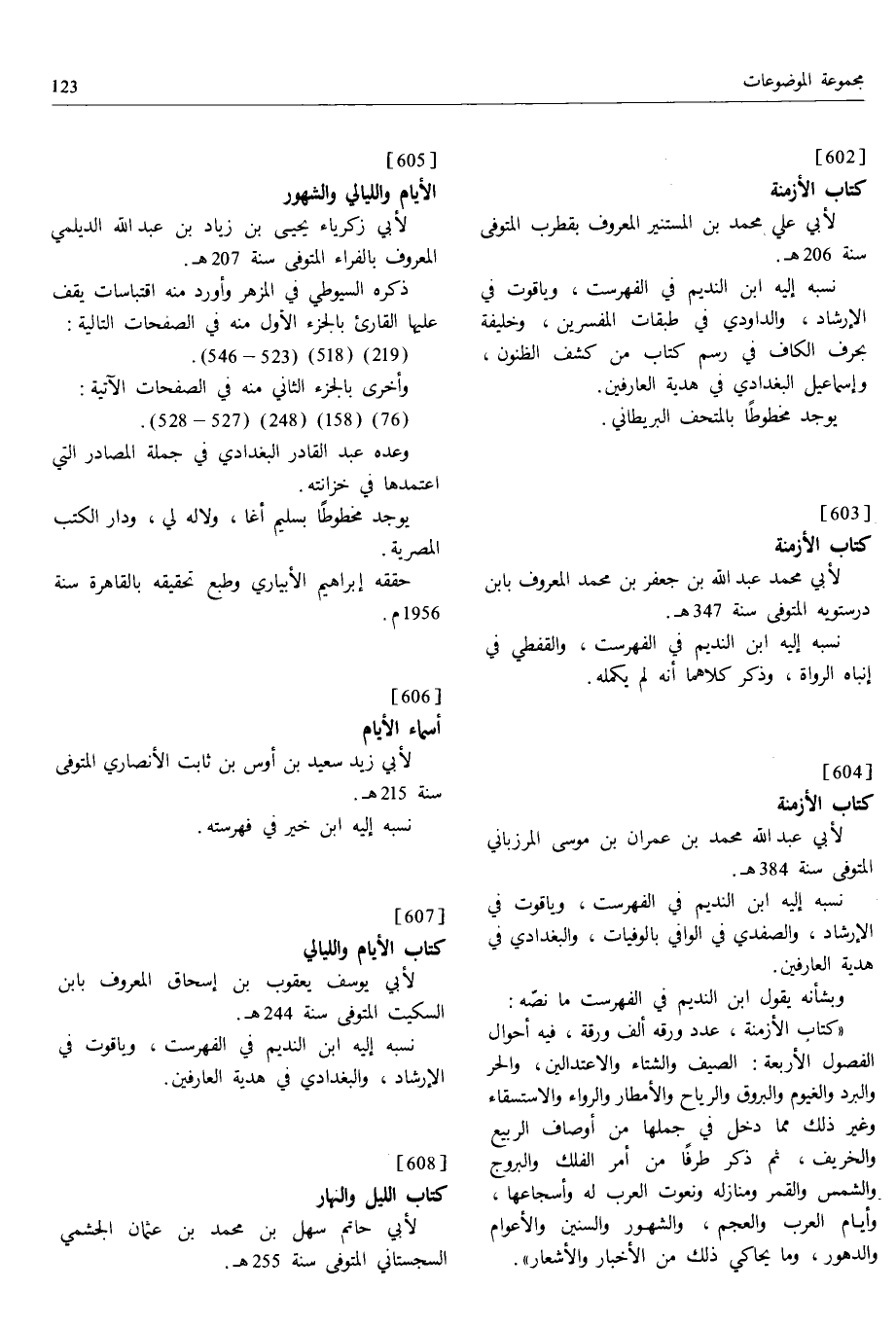 [602] كتاب الأزمنة لأبي علي محمد بن المستنير المعروف بقطرب المتوفى سنة 206 ه.