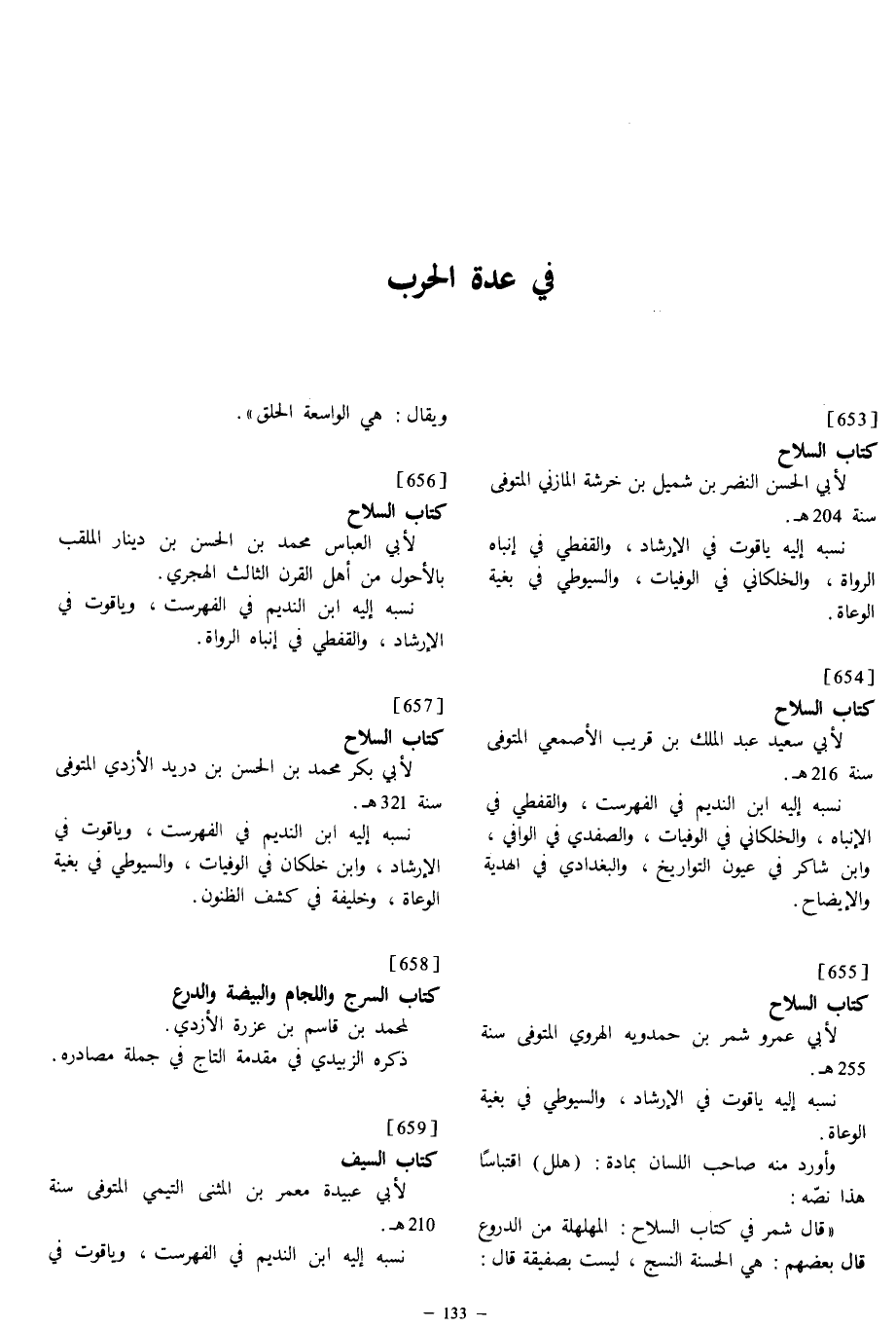 [655] كتاب السلاح لأبي عمرو شمر بن حمدويه الهروي المتوفى سنة 255 ه.