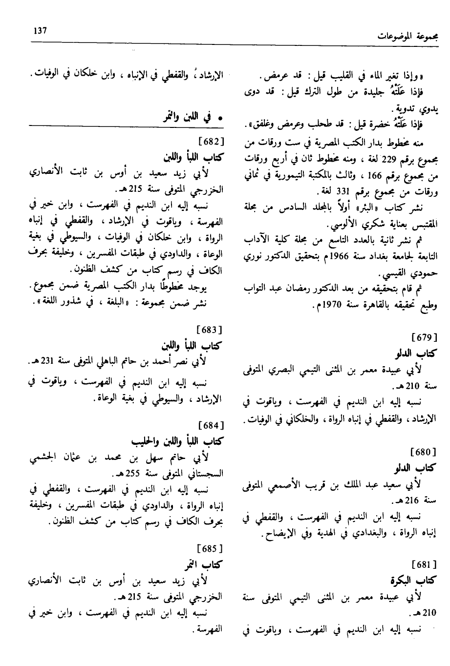 [682] كتاب اللبأ واللبن لأبي زيد سعيد بن أوس بن ثابت الأنصاري الخزرجي المتوفى سنة 215 ه.