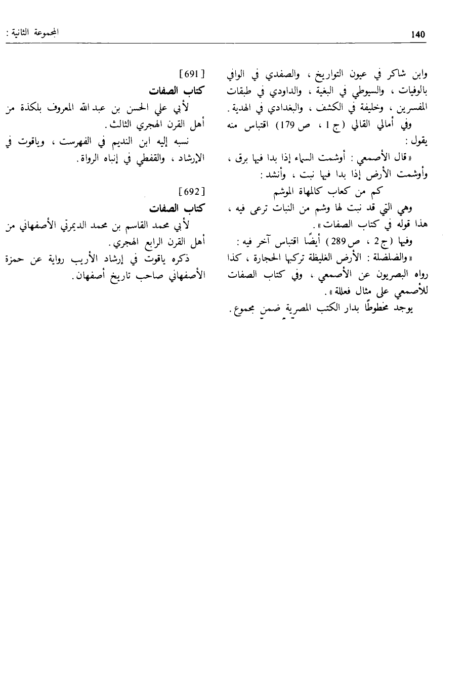 [692] كتاب الصفات لأبي محمد القاسم بن محمد الديمرتي الأصفهاني من أهل القرن الرابع الهجري.