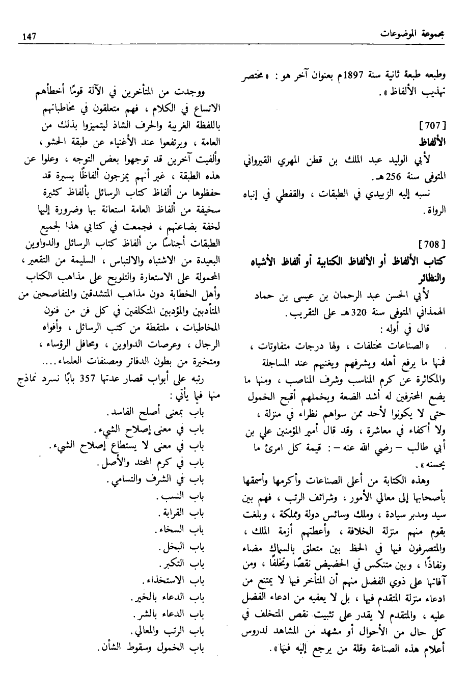 [708] كتاب الألفاظ أو الألفاظ الكتابية أو ألفاظ الأشباه والنظائر