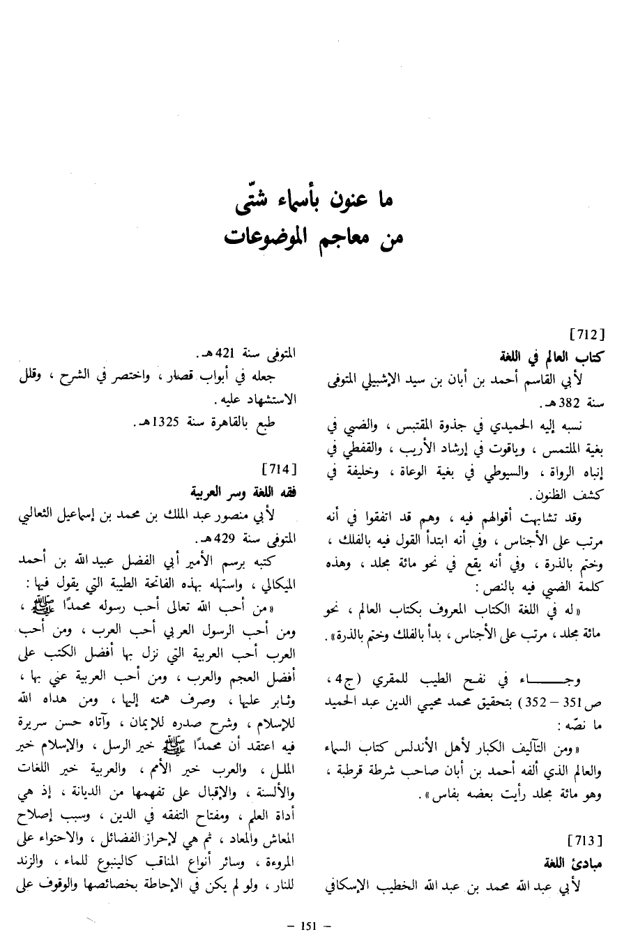 ما عنون بأسماء شتّى من معاجم الموضوعات