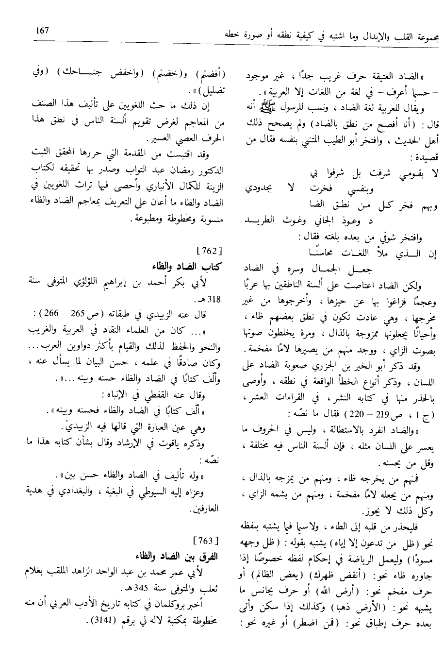 [763] الفرق بين الضاد والظاء لأبي عمر محمد بن عبد الواحد الزاهد الملقب بغلام ثعلب والمتوفى سنة 345 ه.