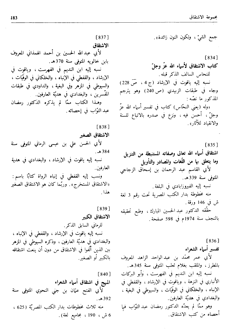 وهو ممّا لم يعدّه الدكتور رمضان عبد التّواب فيما أحصاه من كتب الاشتقاق.
