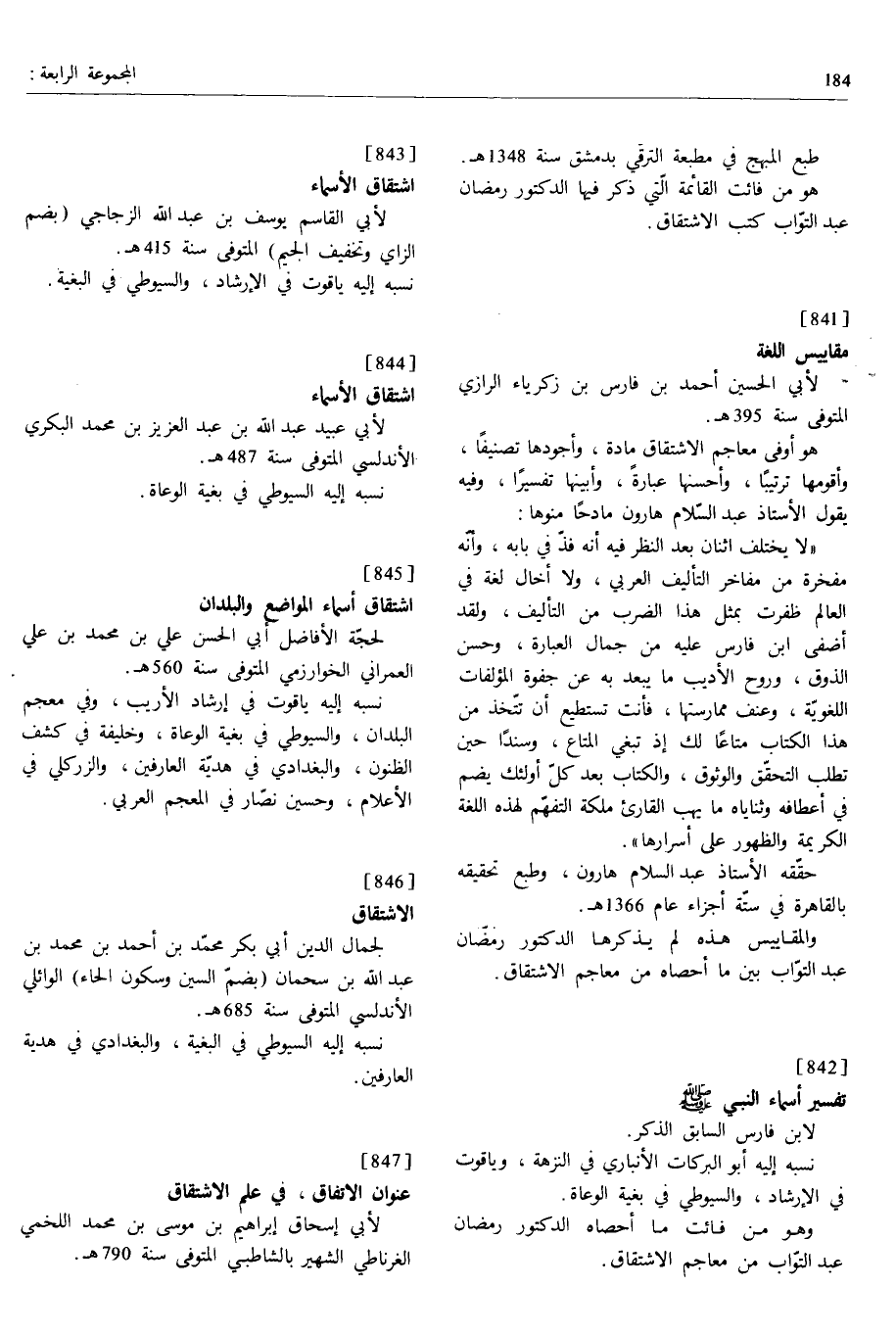 والمقاييس هذه لم يذكرها الدكتور رمضّان عبد التوّاب بين ما أحصاه من معاجم الاشتقاق.