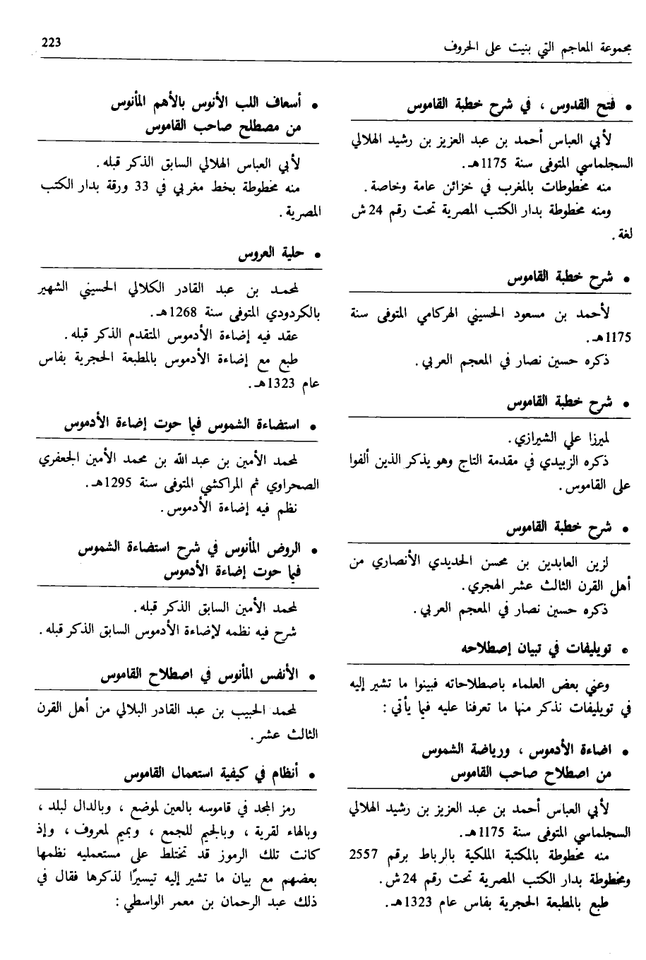 * فتح القدوس، في شرح خطبة القاموس لأبي العباس أحمد بن عبد العزيز بن رشيد الهلالي السجلماسي المتوفى سنة 1175 ه.