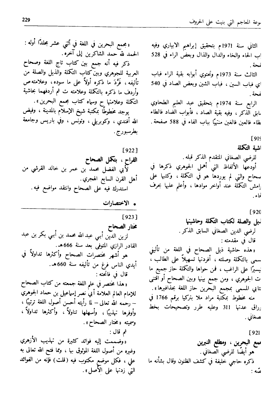 [923] مختار الصحاح لزين الدين أبي عبد اللّه محمد بن أبي بكر بن عبد القادر الرازي المتوفى بعد سنة 666 ه.
