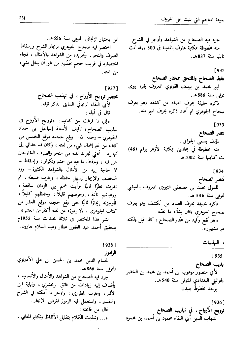 [937] مختصر ترويح الأرواح، في تهذيب الصحاح